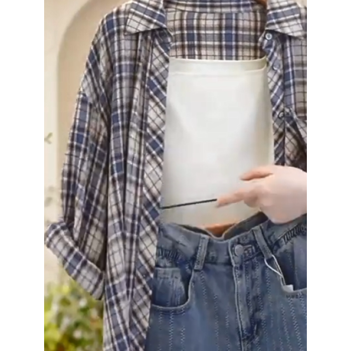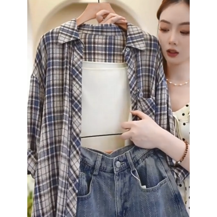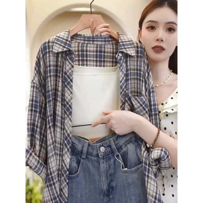 【易打理襯衫】2025早秋新款格子防曬外套休閒寬松慵懶風襯衣長袖