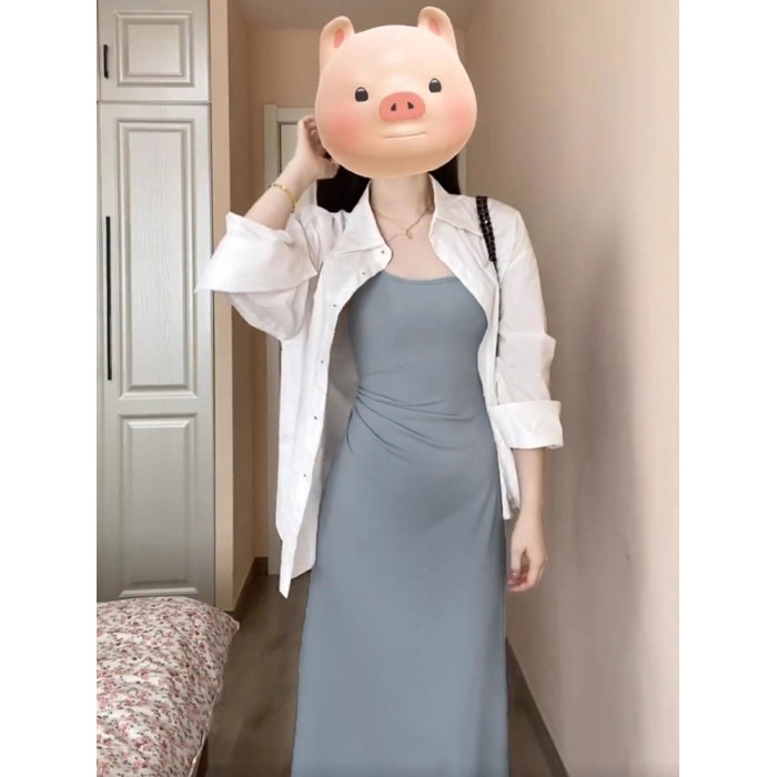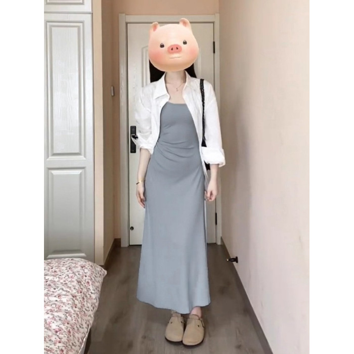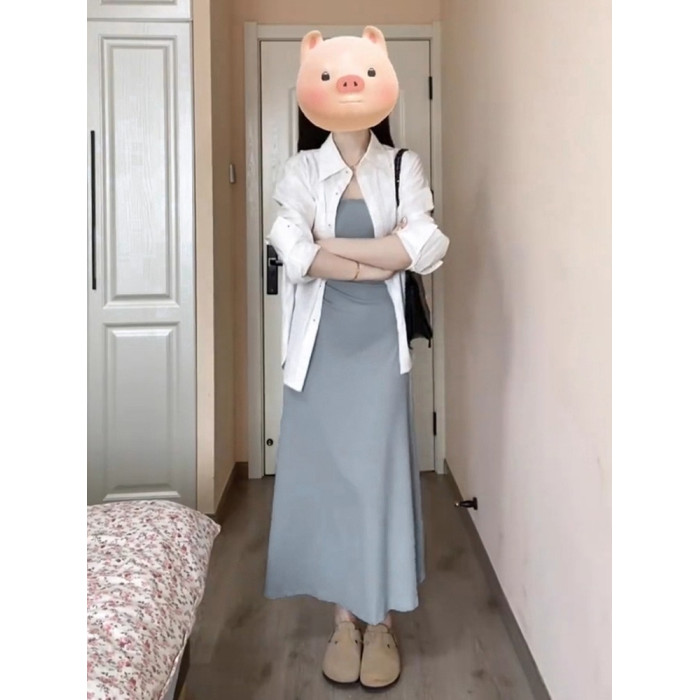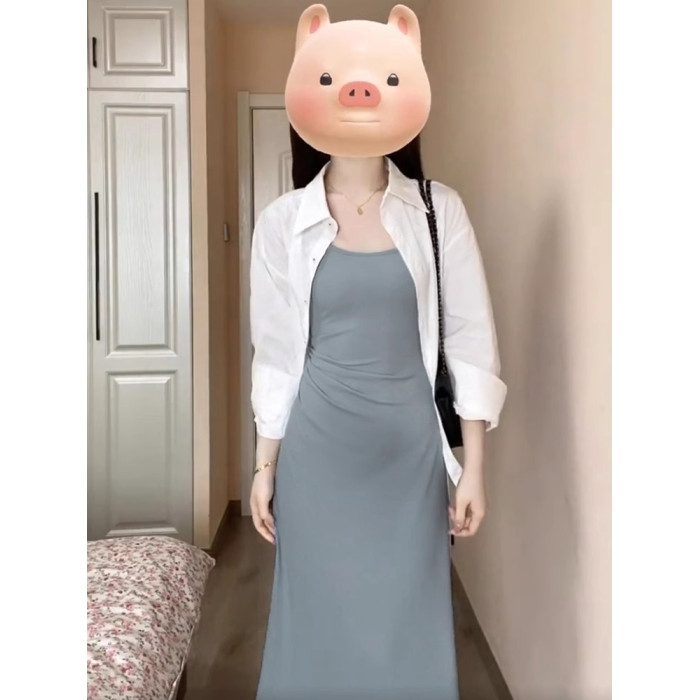 今年流行的漂亮套裝白色防曬襯衫女2025夏日穿搭高級吊帶裙兩件套