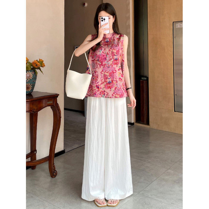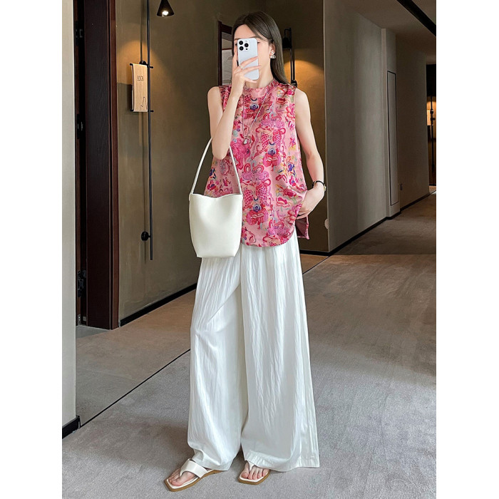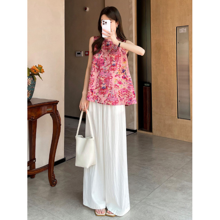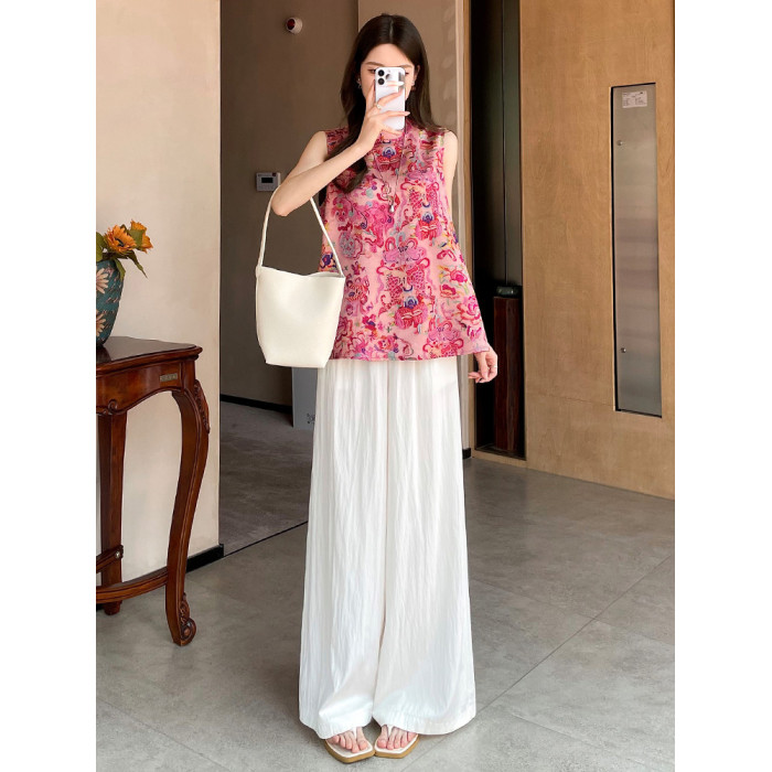 新中式國風無袖盤釦立領襯衫背心女夏季新款復古小衆寬松顯瘦上衣
