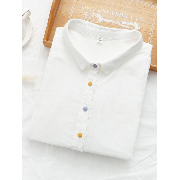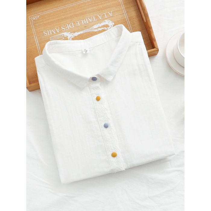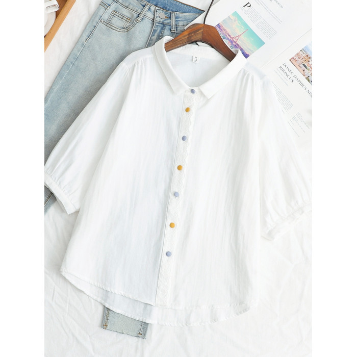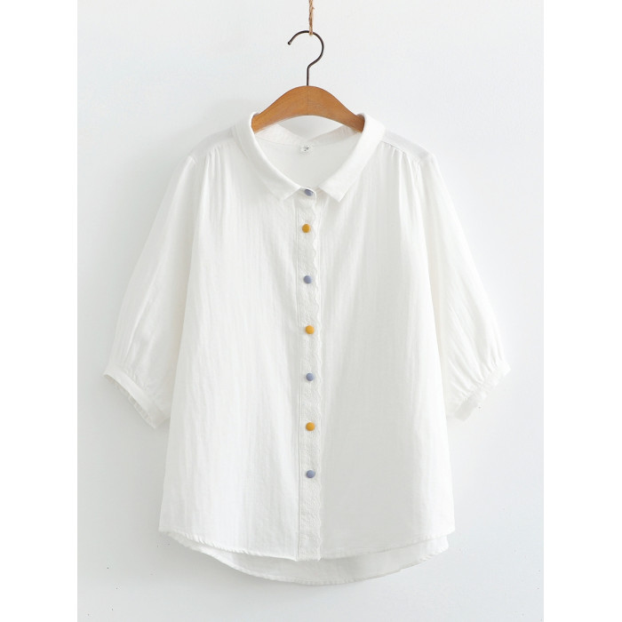 白色花條刺綉彩釦 YZ0038中袖棉紗