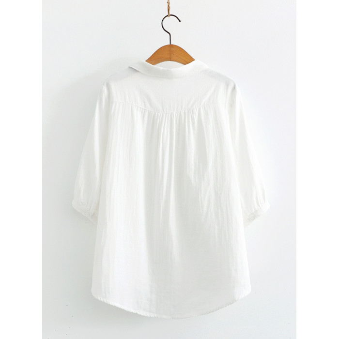 淺藍色門襟小花彩釦 Y3393中袖棉紗