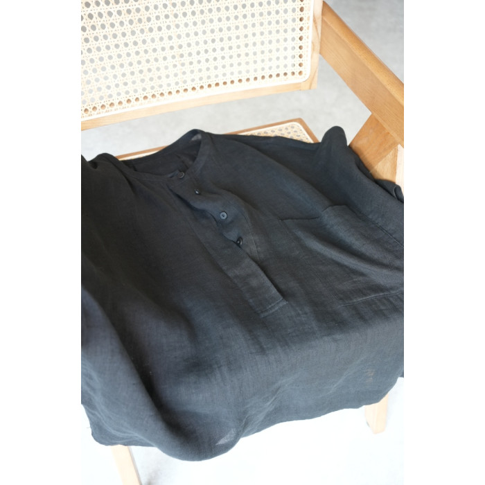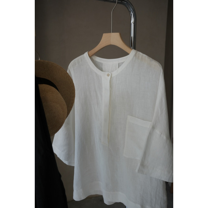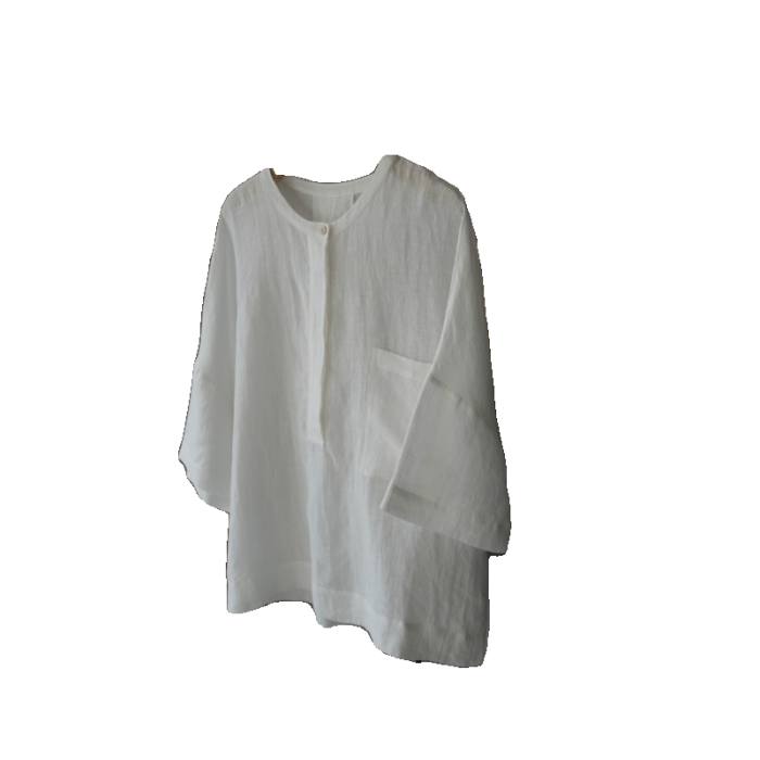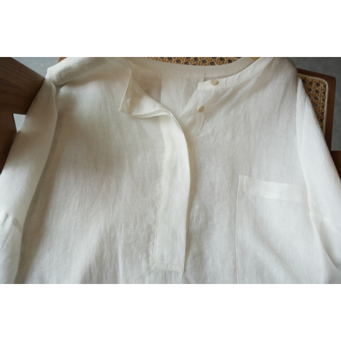 夏季日系文藝度假風圓領進口重磅細亞麻襯衫輕盈透氣寬松小衫上衣