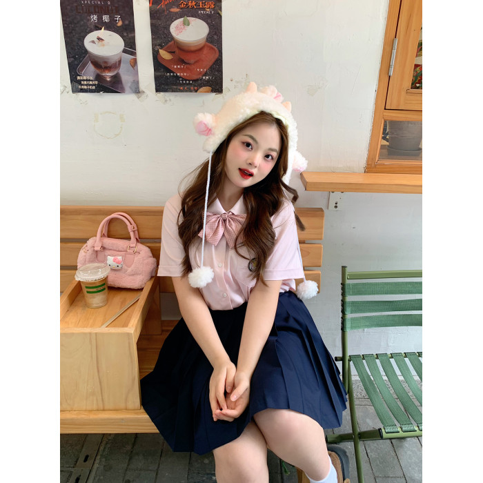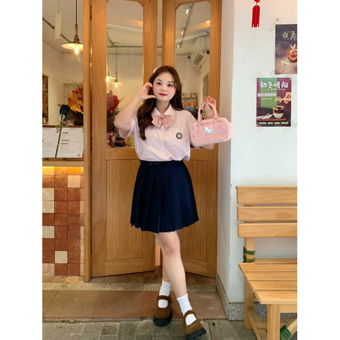 阿車家的大碼jk胖mm原創日系長短袖襯衫女學院風甜美百搭粉色襯衣