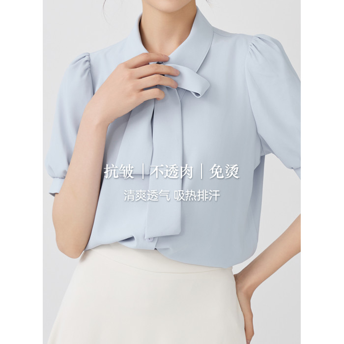 短袖霧霾藍襯衫【飄帶可拆卸 一衣兩穿】