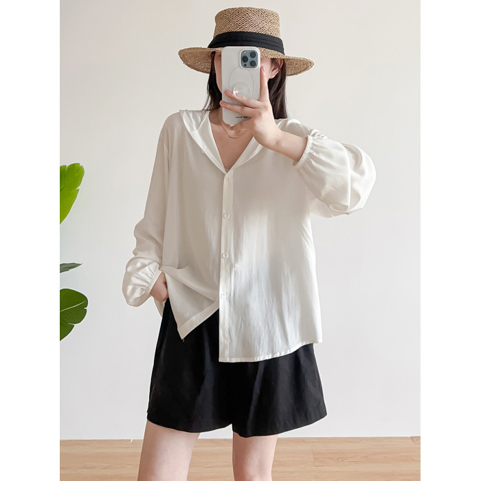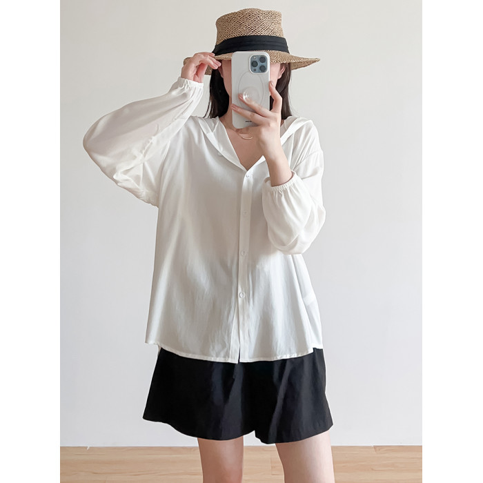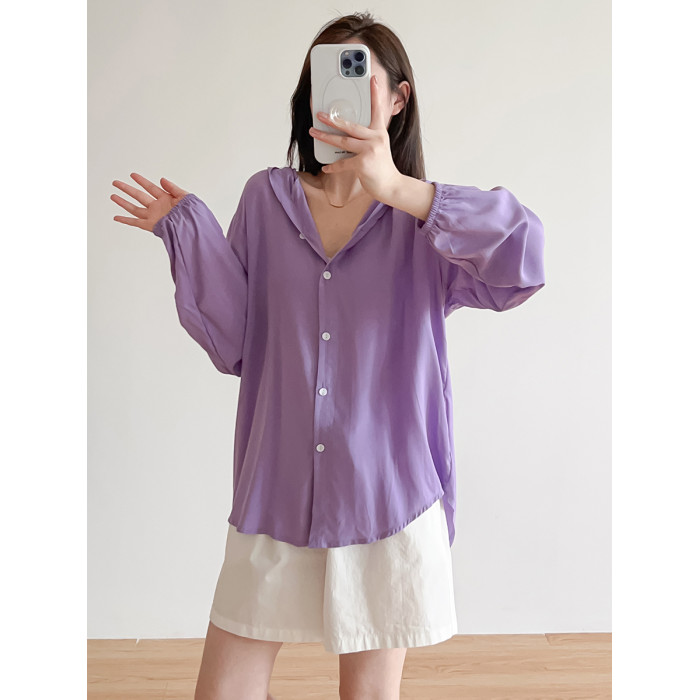 夏季棉綢襯衫女士2025年薄款寬松大碼連帽開衫防曬純色人造棉上衣