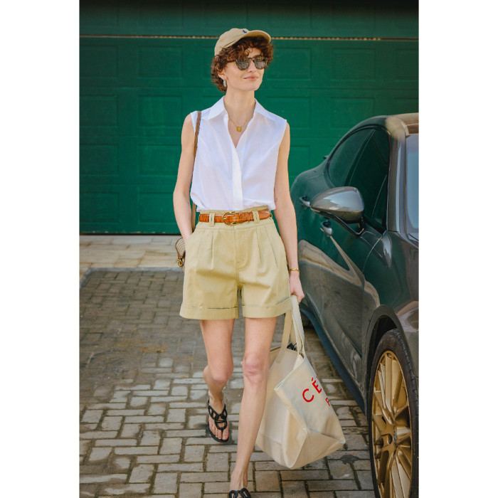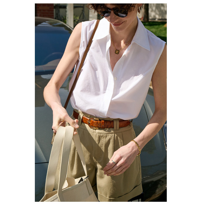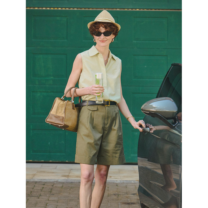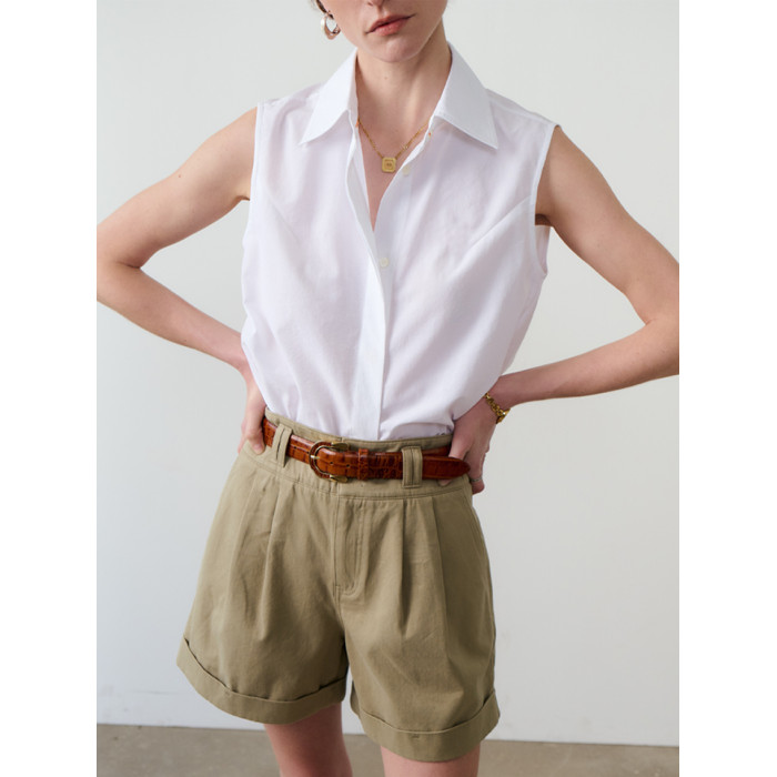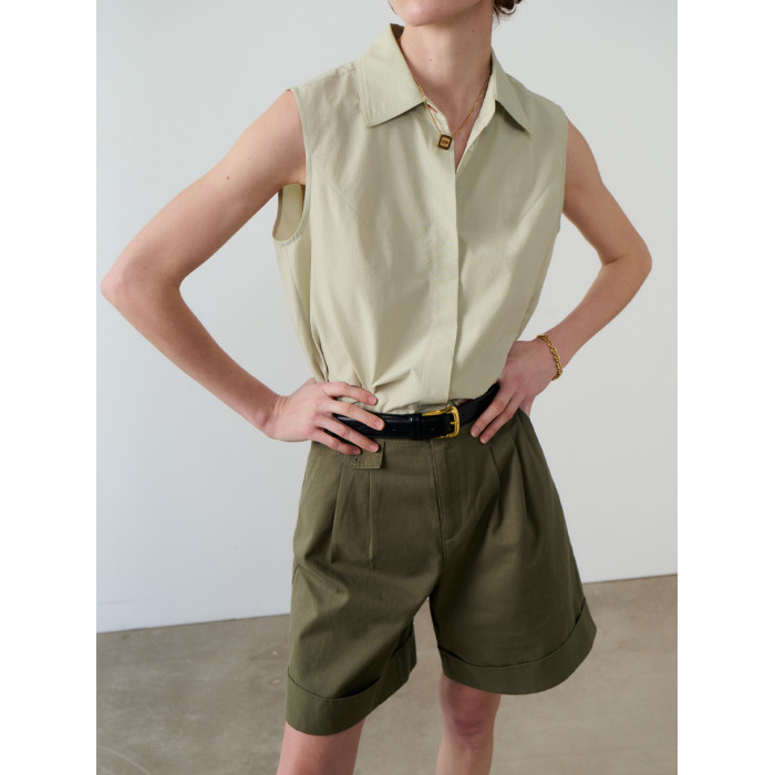 三所vintage 經典升級 進口日本紗抗皺無袖直角肩刺綉方領襯衫2色