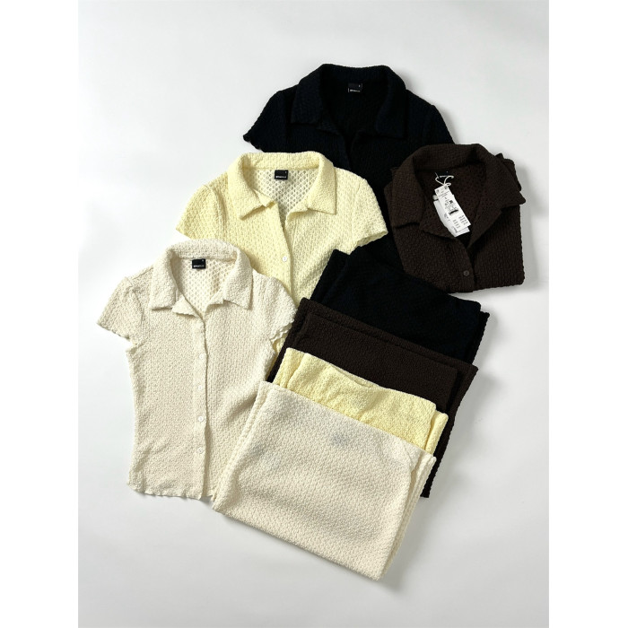 北歐小衆gt xs-xl碼法式復古肌理感短袖襯衫直筒裙半身裙休閒套裝