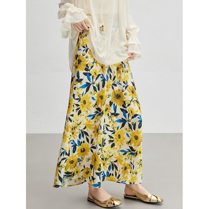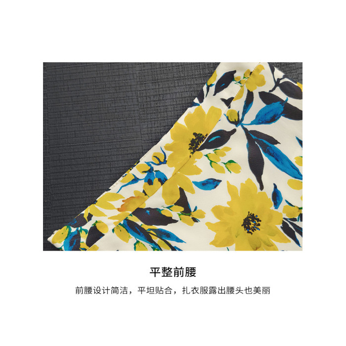 【】夏威夷半身裙 仿絲油畫印花_撞色魚尾中長裙氣質包臀裙