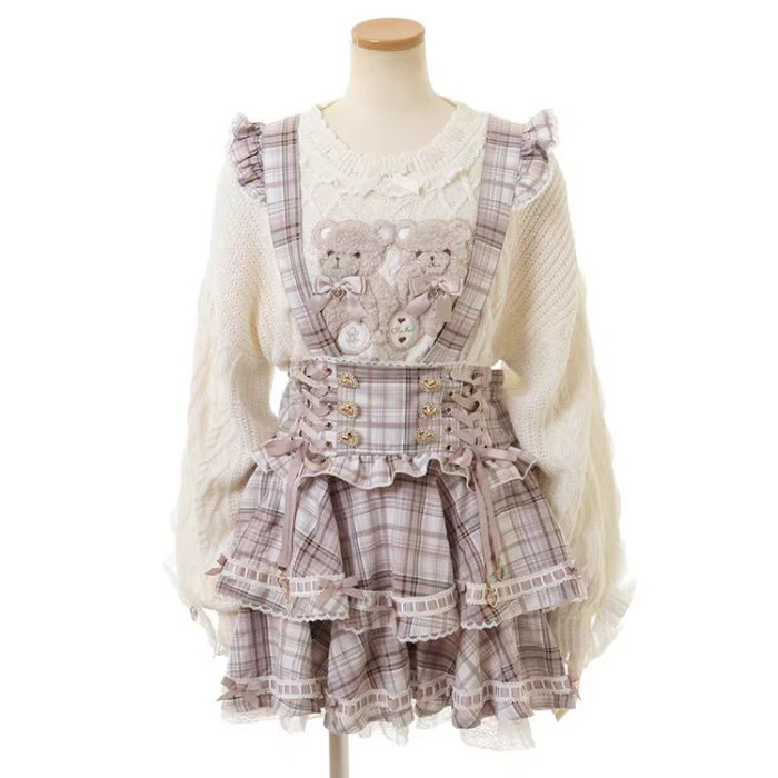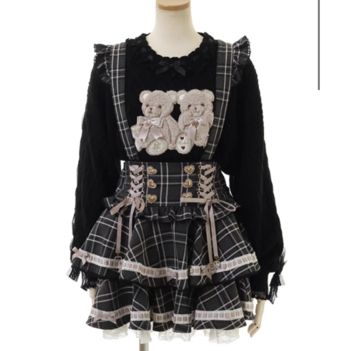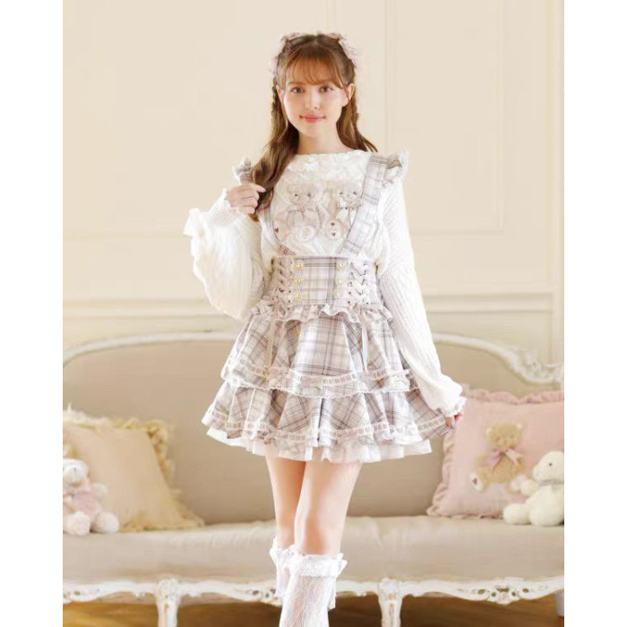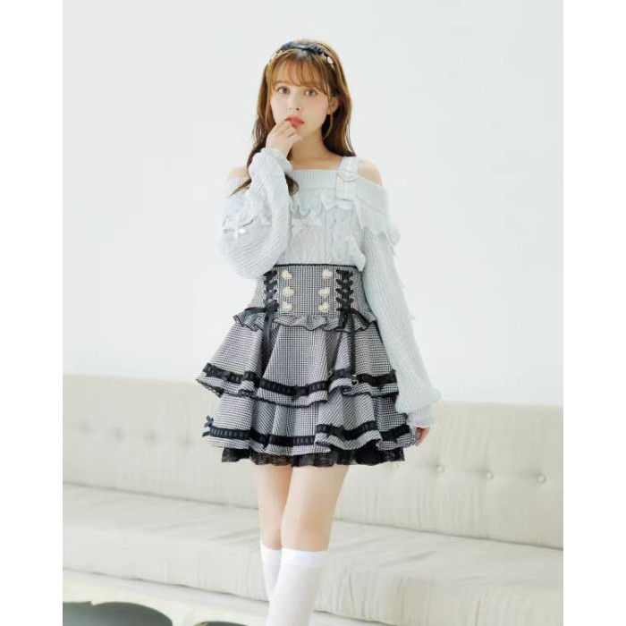日單日系蘿莉塔雙色高腰顯高顯瘦甜美收腰褶邊812半身裙