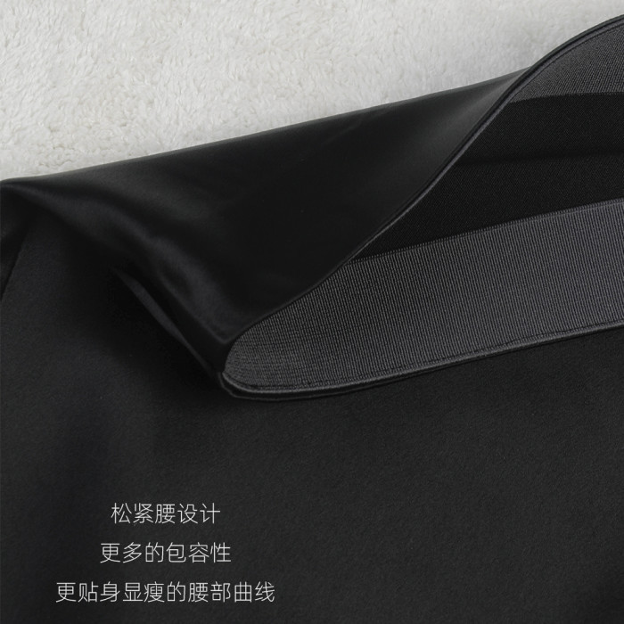 松緊腰三醋酸半身裙女小黑裙黑色短中長款百搭顯瘦腿長垂感繖裙