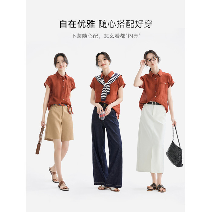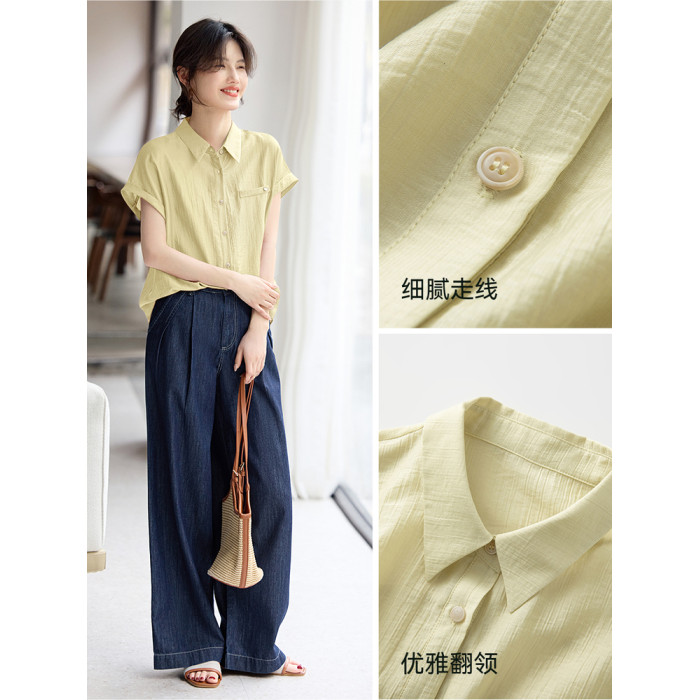【萊賽爾呼吸衫】XWI訢未松弛肌理感短袖襯衫女夏季多色簡約襯衣