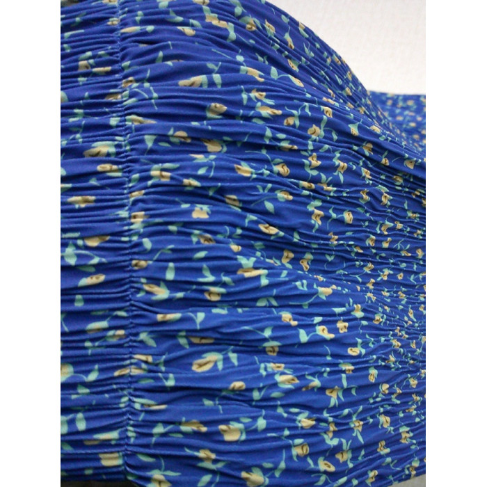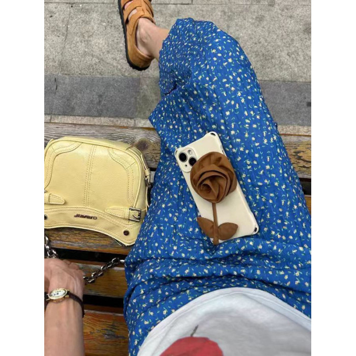 碎花半身裙女夏多巴胺藍色褶皺印花直筒裙高腰顯瘦後開叉包臀裙子