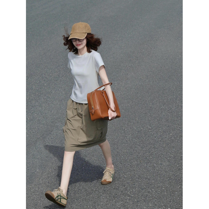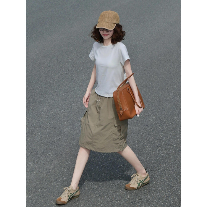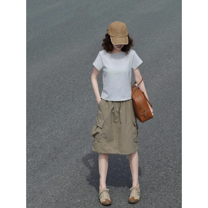 2025年夏季新款簡約抽繩口袋工裝半身裙女百搭顯瘦個性A字中裙子