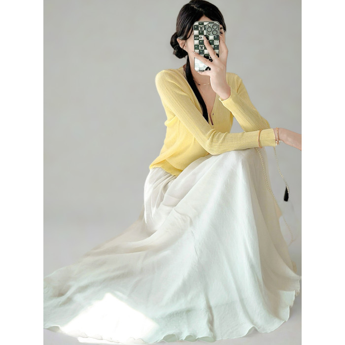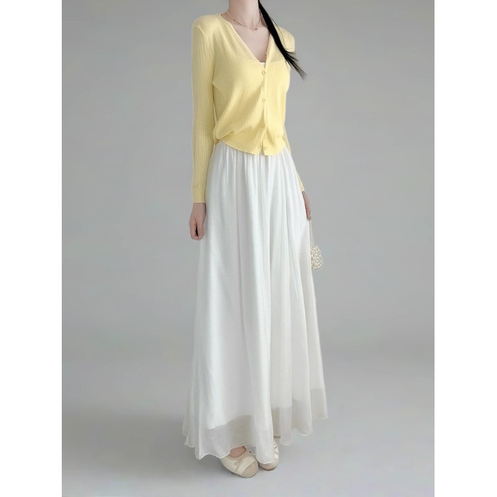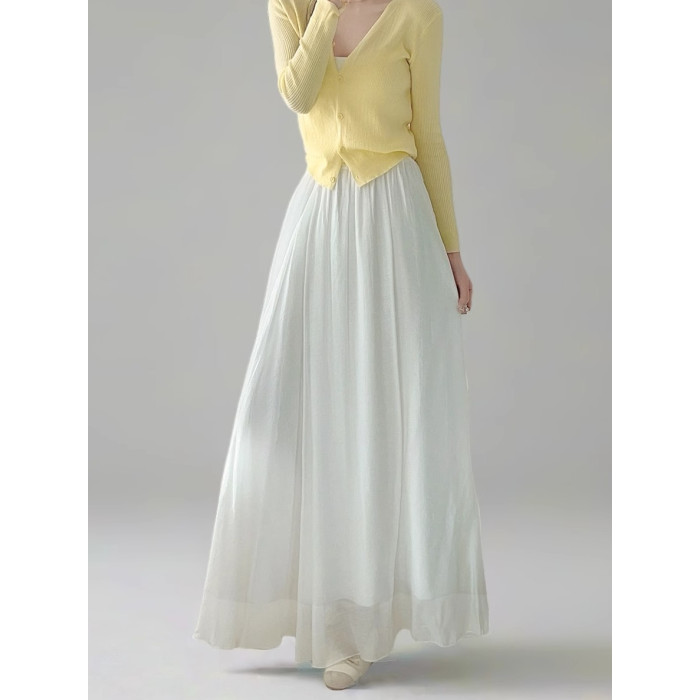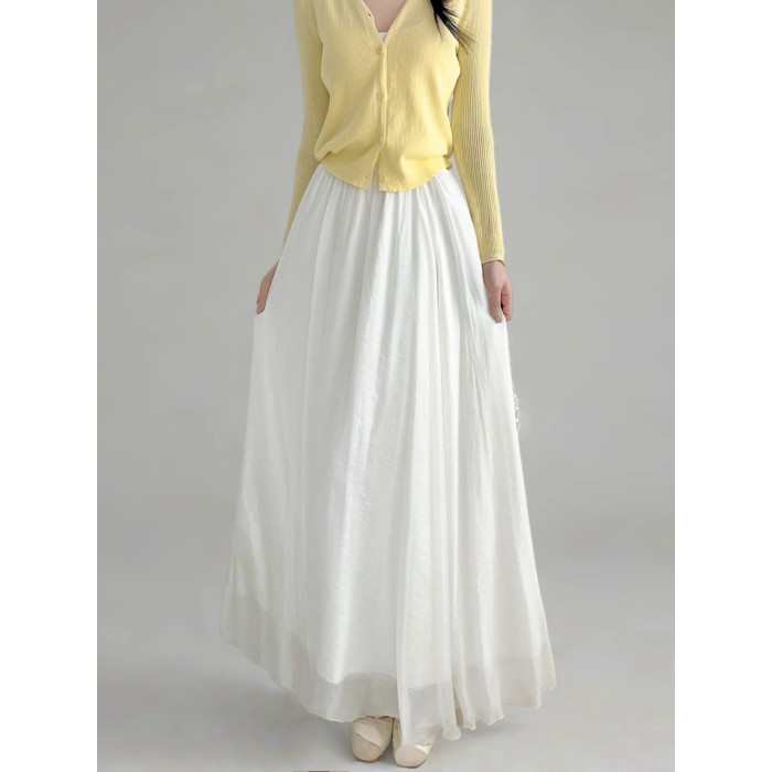 奶白色棉麻大擺半身裙抗皺女2025夏秋新款高腰顯瘦長裙垂感拖地裙