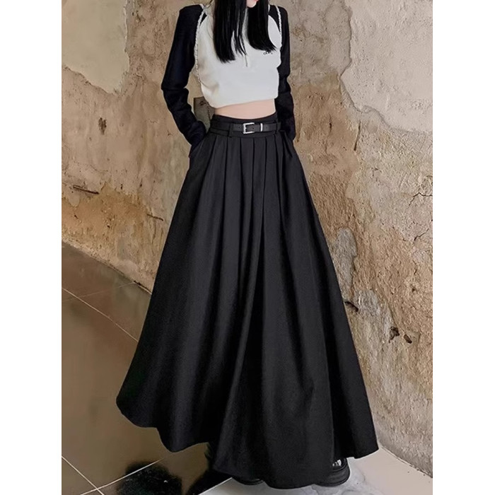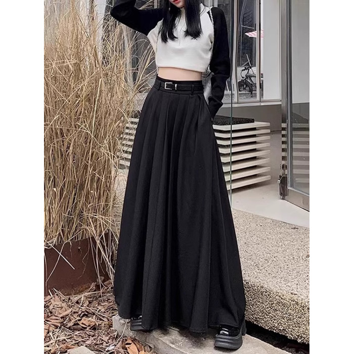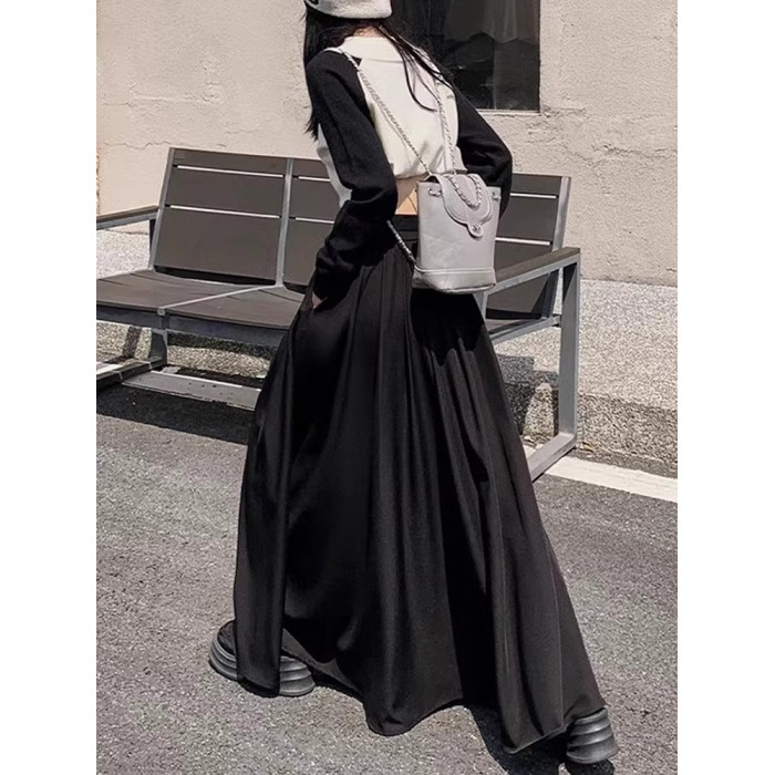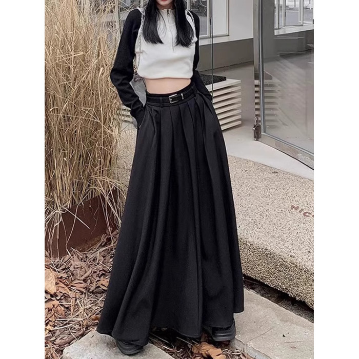 高個子大裙擺半身裙秋季大碼顯瘦超長款到腳踝百褶裙垂墜感西裝裙