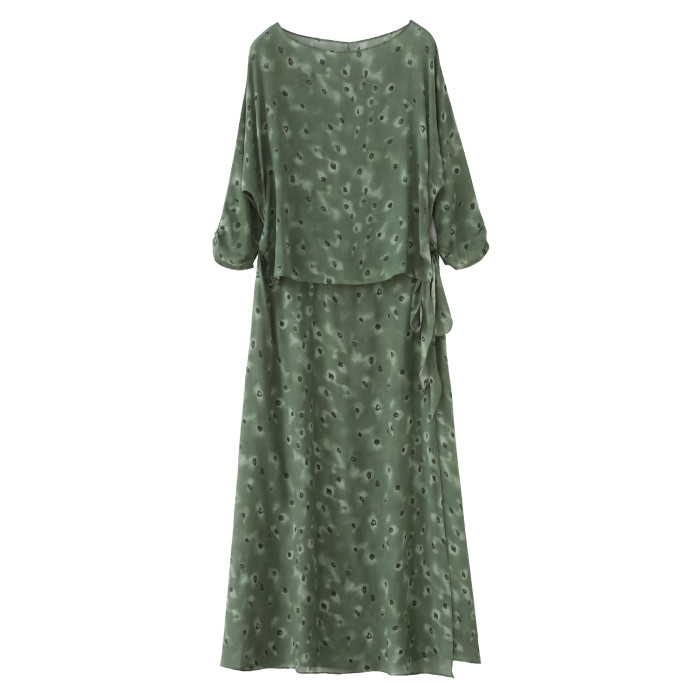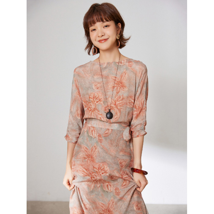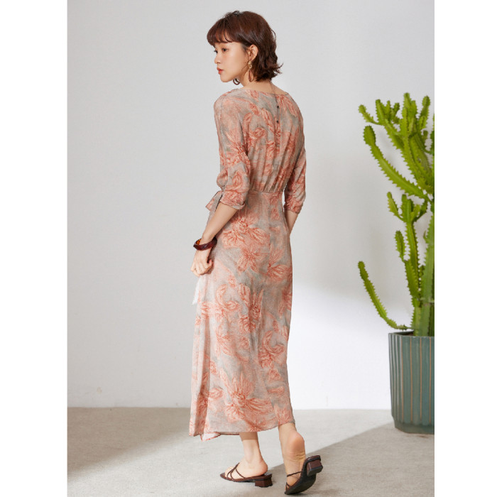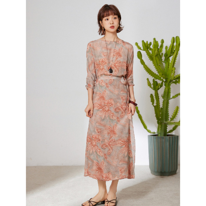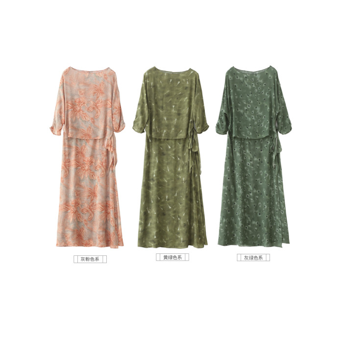 DRA3957永無鄕【不蔘加】夏 假兩件收腰顯瘦16雙縐印花真絲連衣裙
