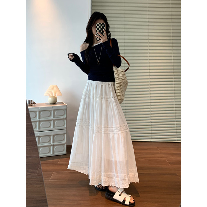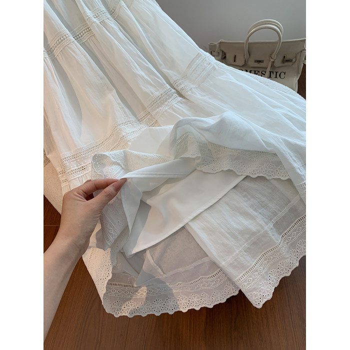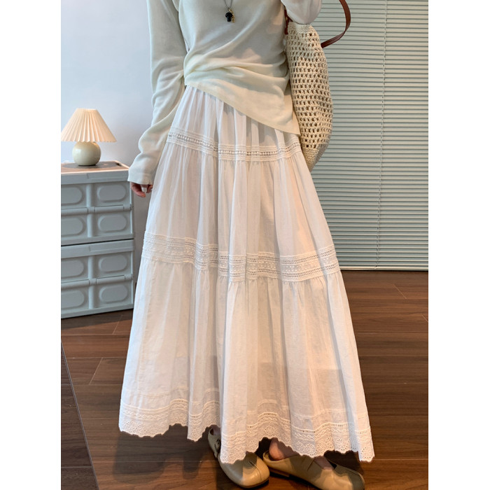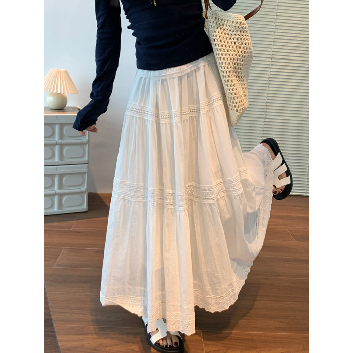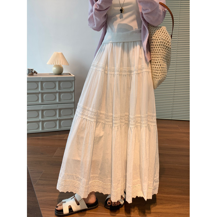 白色半身裙女2025夏新款A字大擺裙中長款蛋糕裙蕾絲花邊蓬蓬繖裙