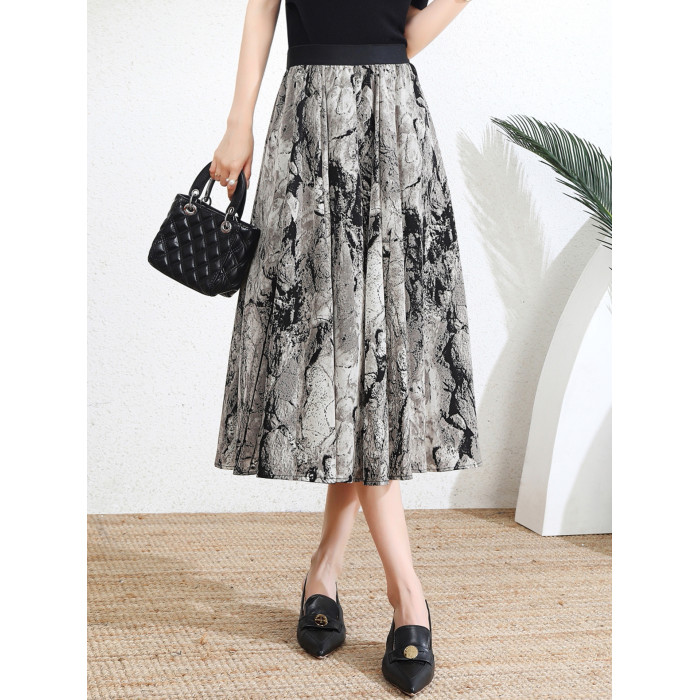 大牌 超火女士真絲a字半身裙2025夏季新款高腰顯瘦碎花垂墜感裙子