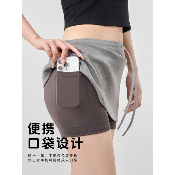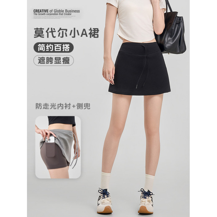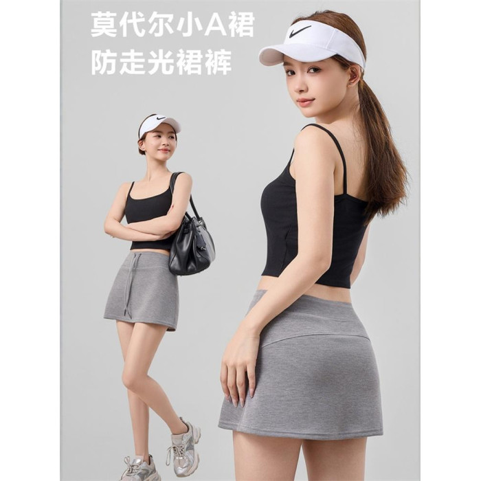 夏季運動風莫代爾假兩件防走光a字裙短裙女抽繩休閒包臀裙網球裙