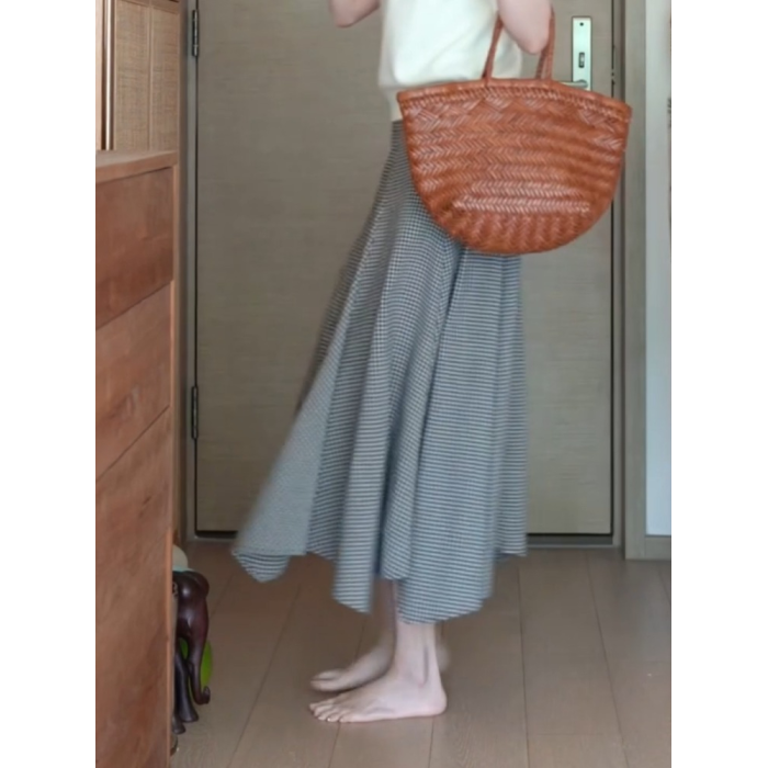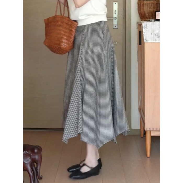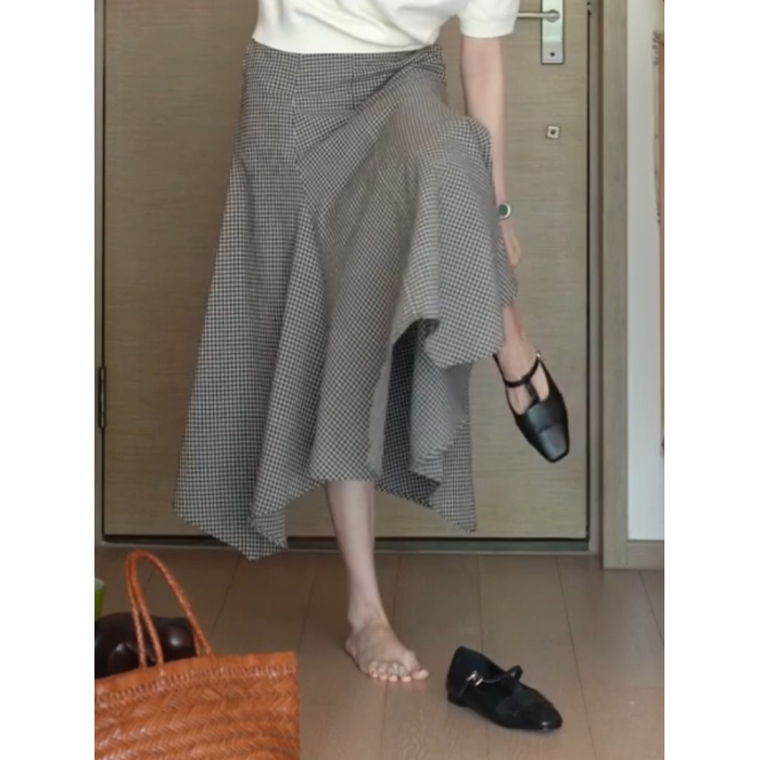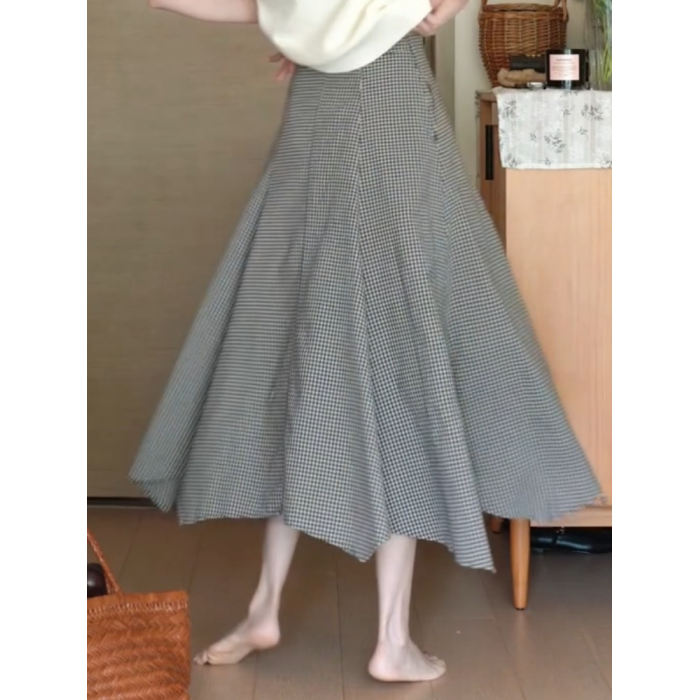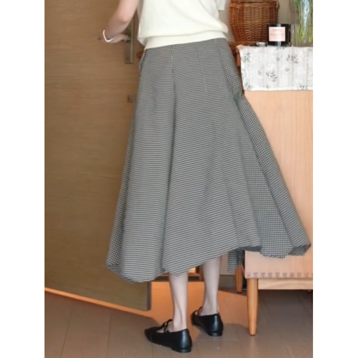 2025流行爆款a字百褶長裙巨好看梨型身材黑白格紋半身裙女
