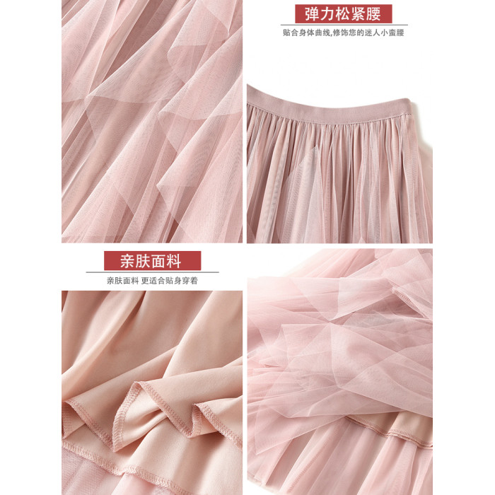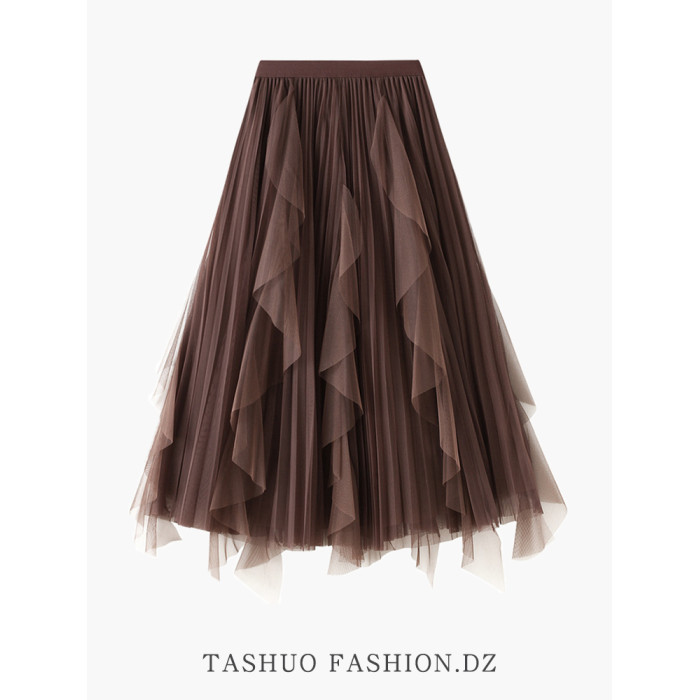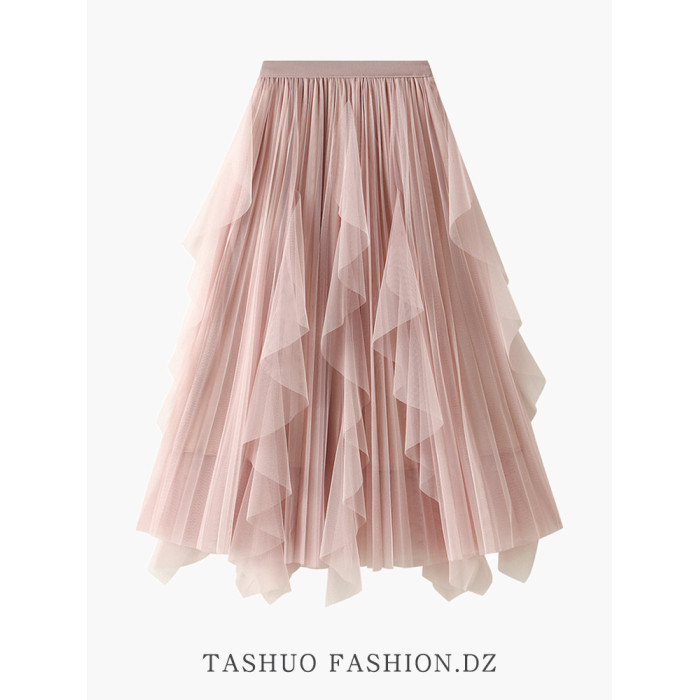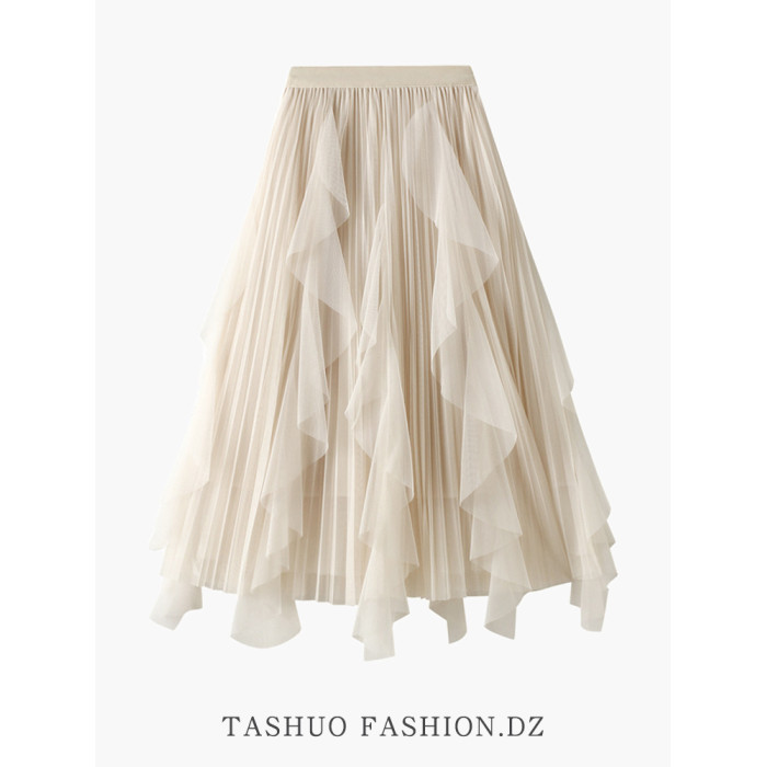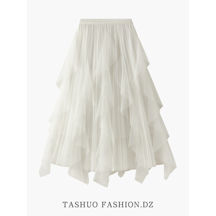 白色紗裙半身裙女夏2025新款荷葉邊設計感小衆不規則氣質網紗長裙