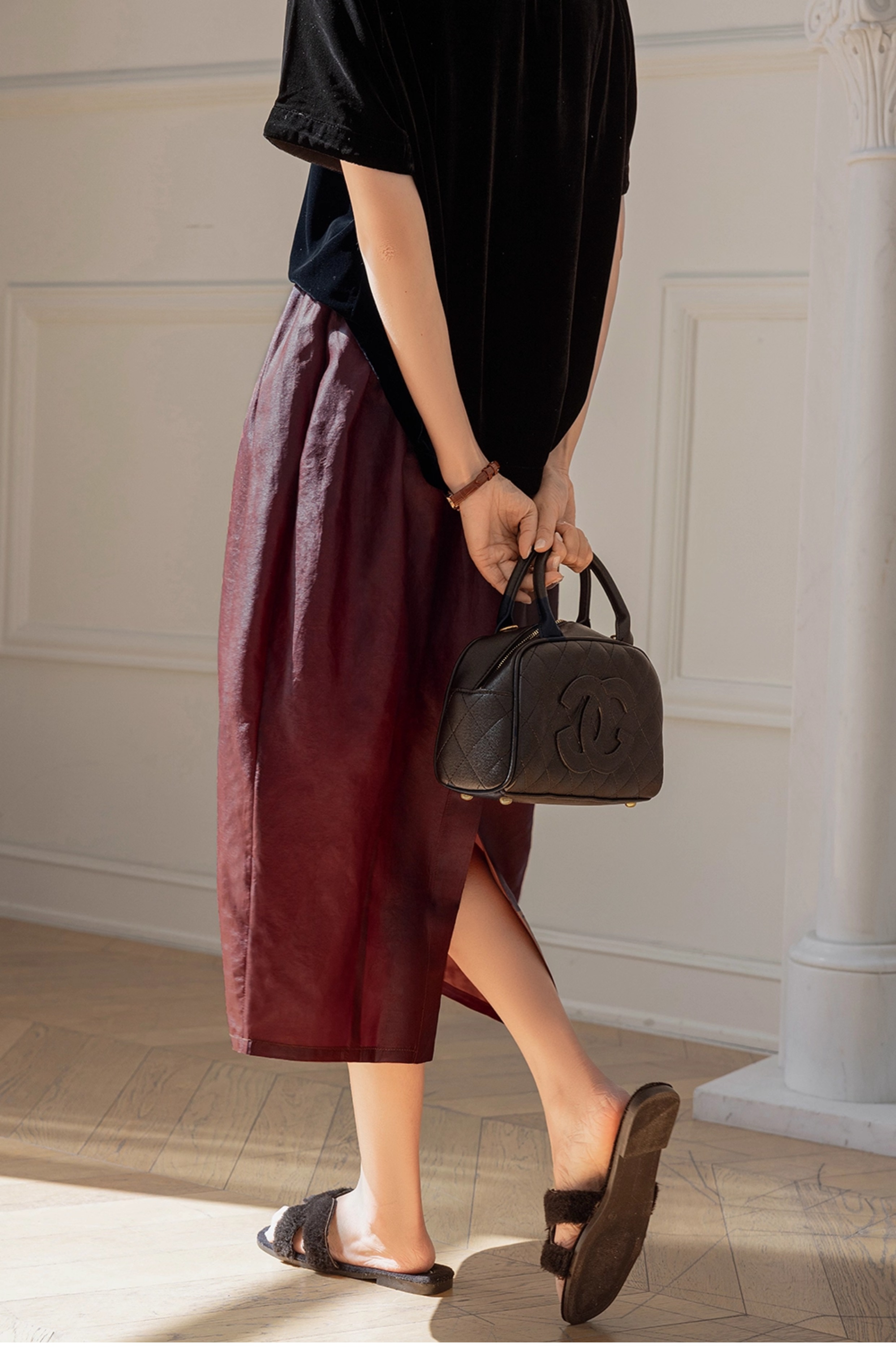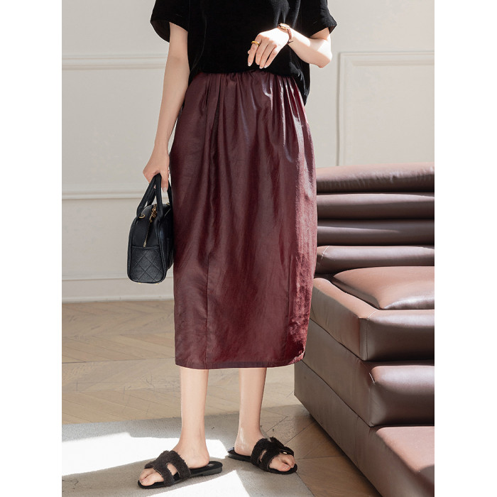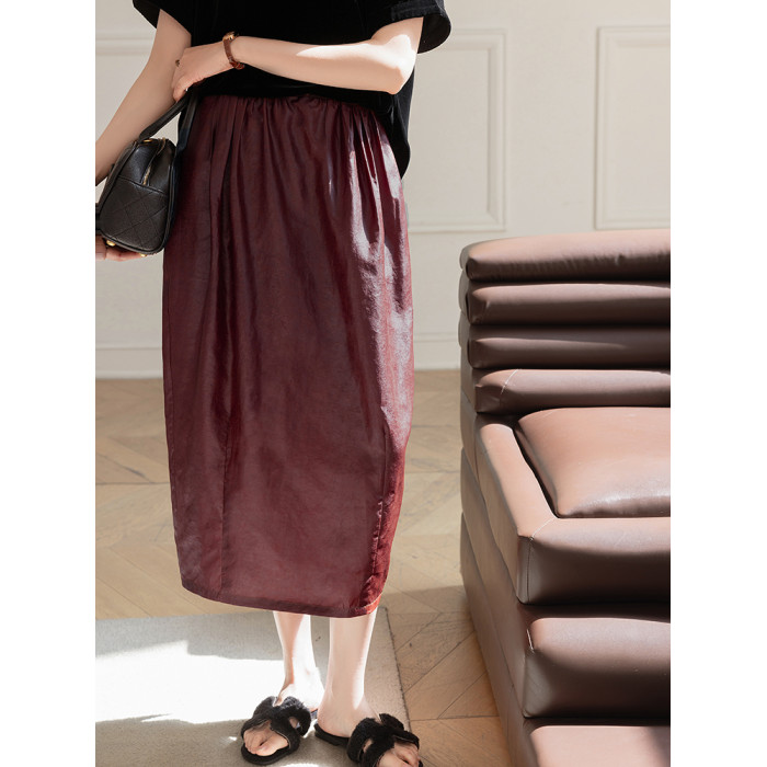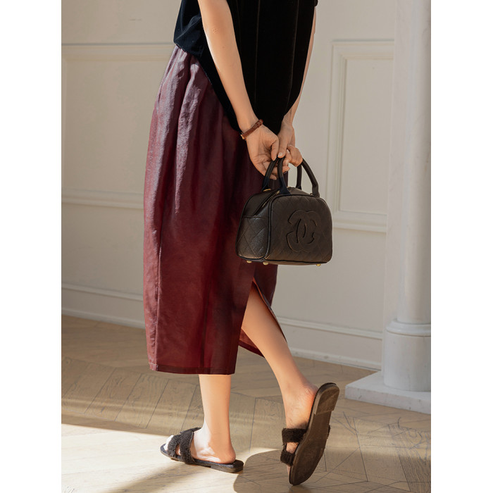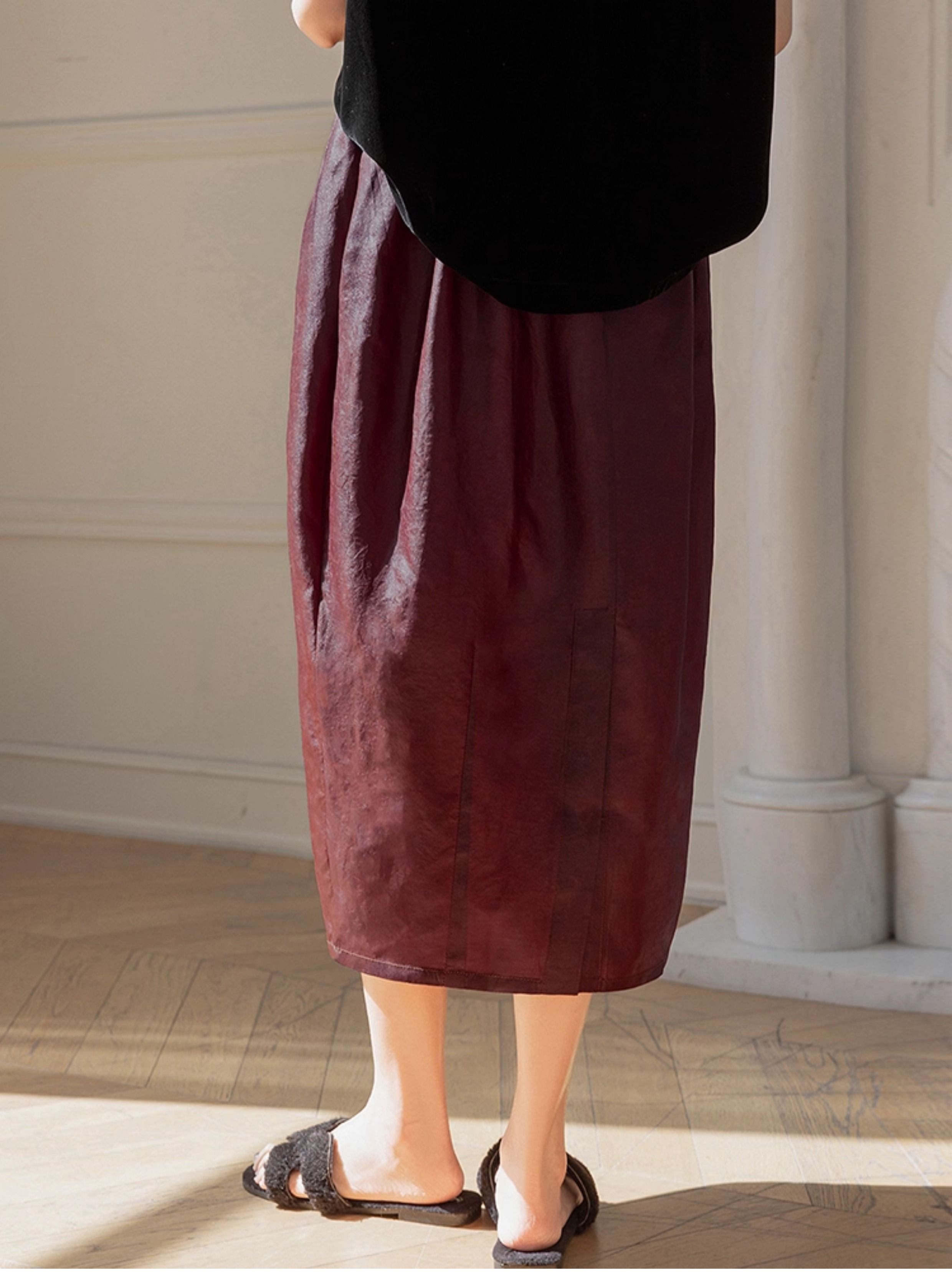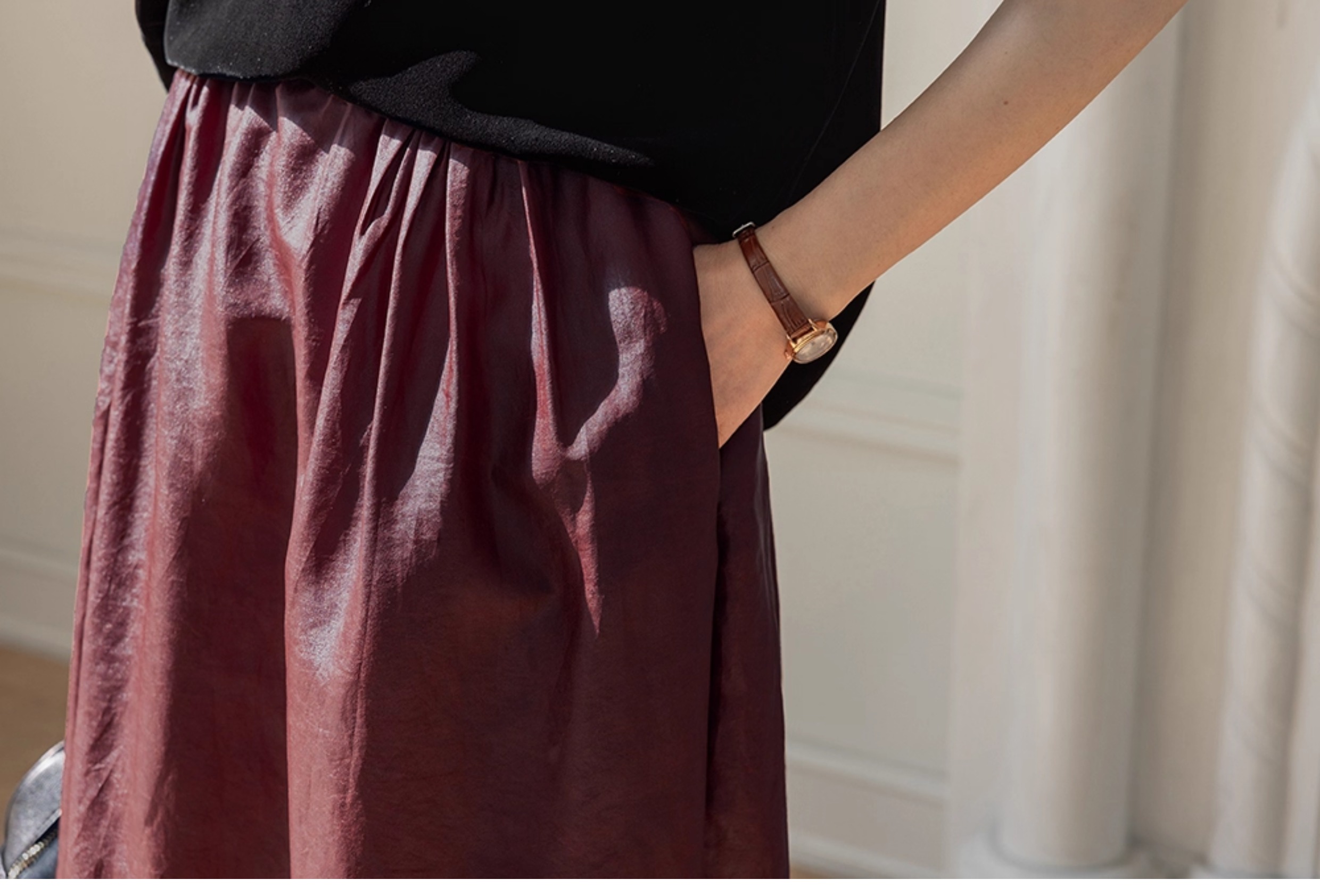 龜裂紋紅雲紗半裙寬松休閒香雲紗花苞裙桑蠶絲老料中長款半身裙