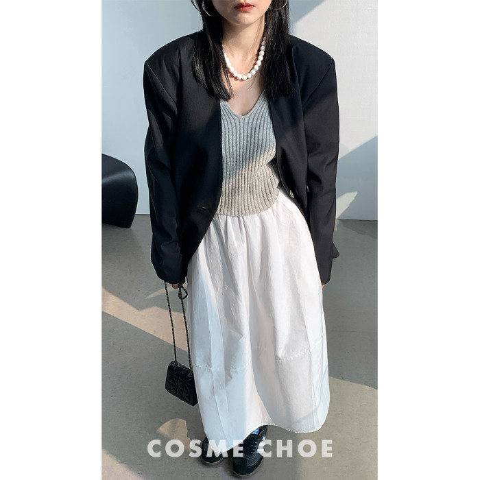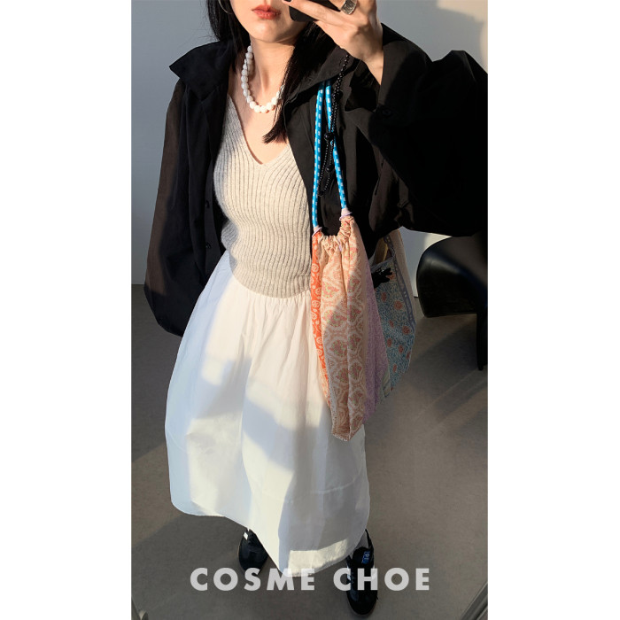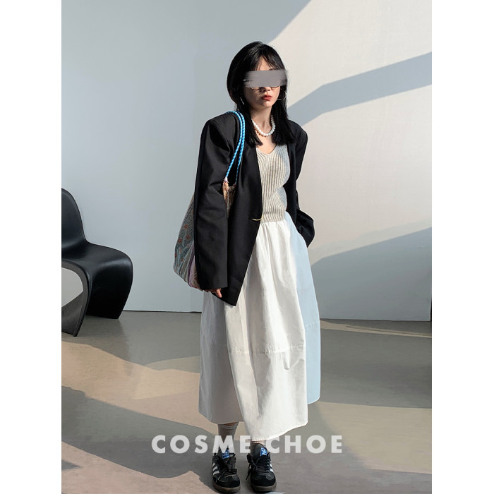 法式立體剪裁白色繖裙半身裙女25春夏中長款棉清新百搭時尚松緊腰