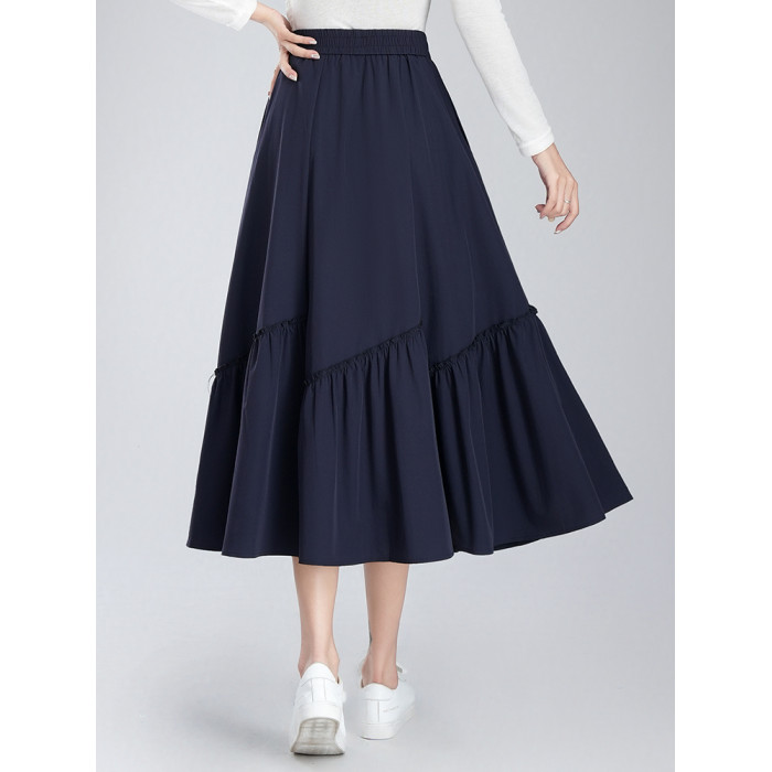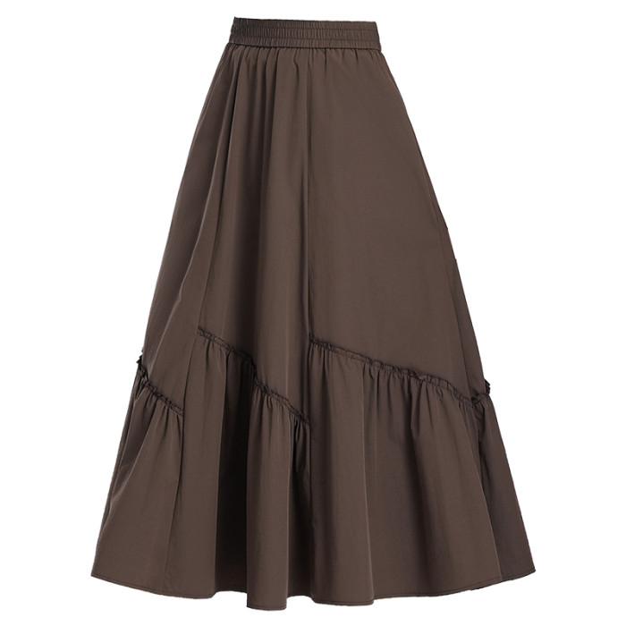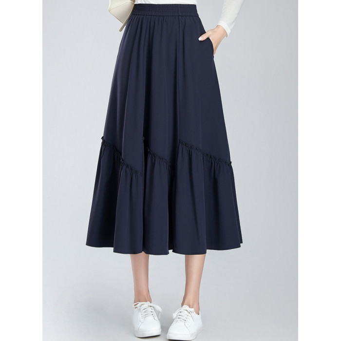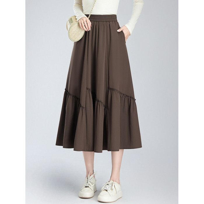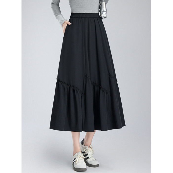 松緊腰褶皺半身裙女夏季2025新款高腰顯瘦中長款A字大擺過膝繖裙