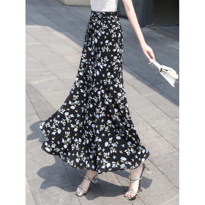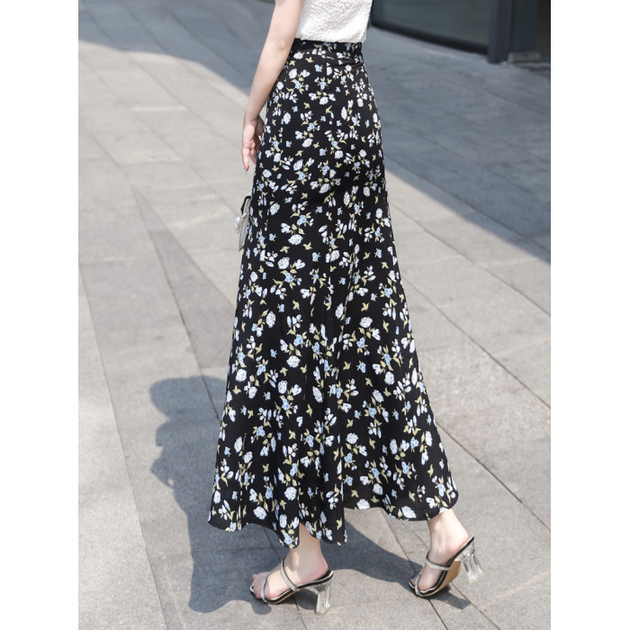 碎花半身長裙女夏季2025新款長款氣質印花裙子包臀魚尾裙半身裙