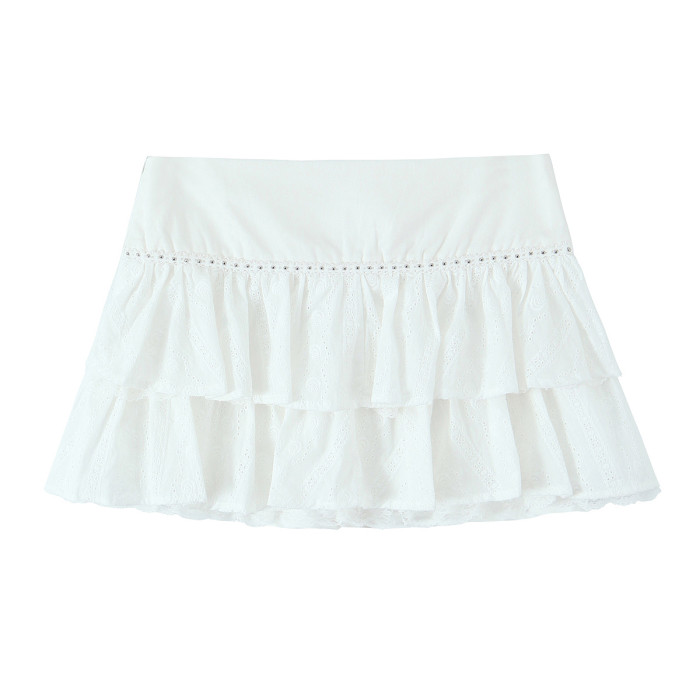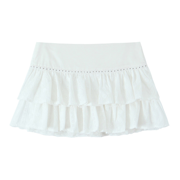 2025夏季新品奶油蛋糕 甜辣百搭白色綉花提花拼布蕾絲蛋糕裙短裙