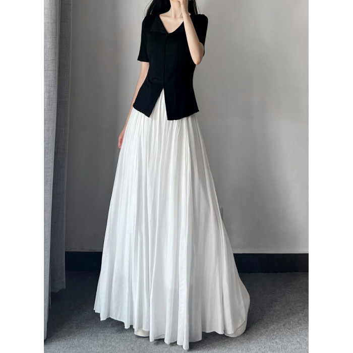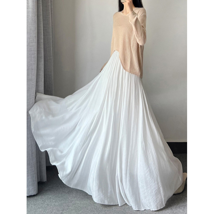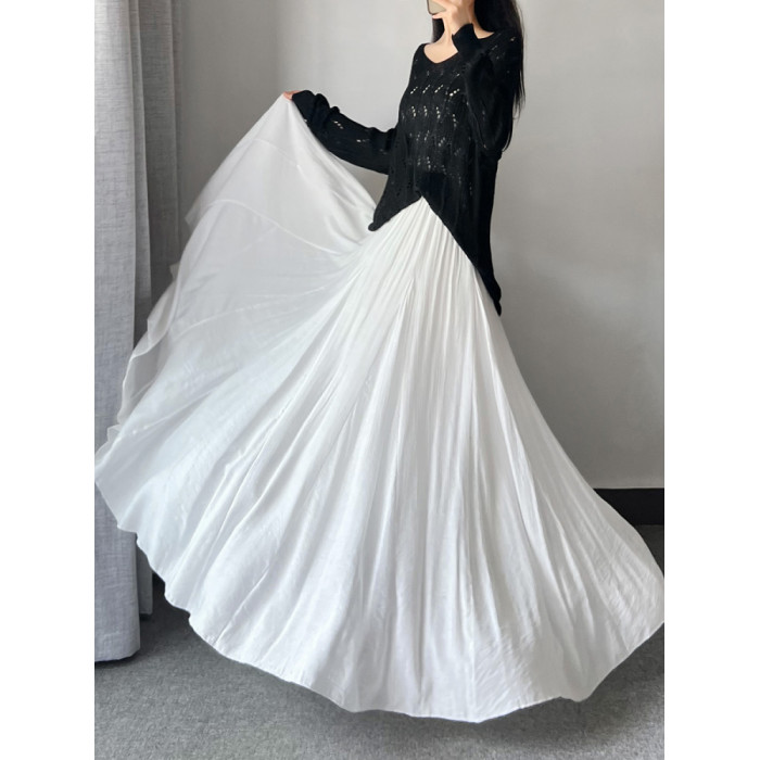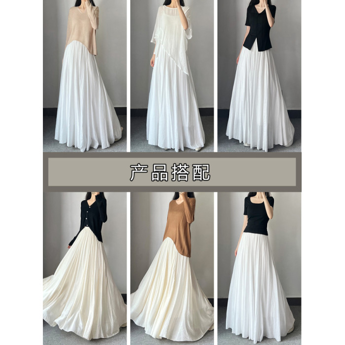 白色半身裙女加長款春夏新款顯瘦大擺裙垂感飄逸a字及踝拖地長裙