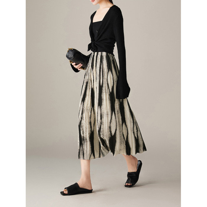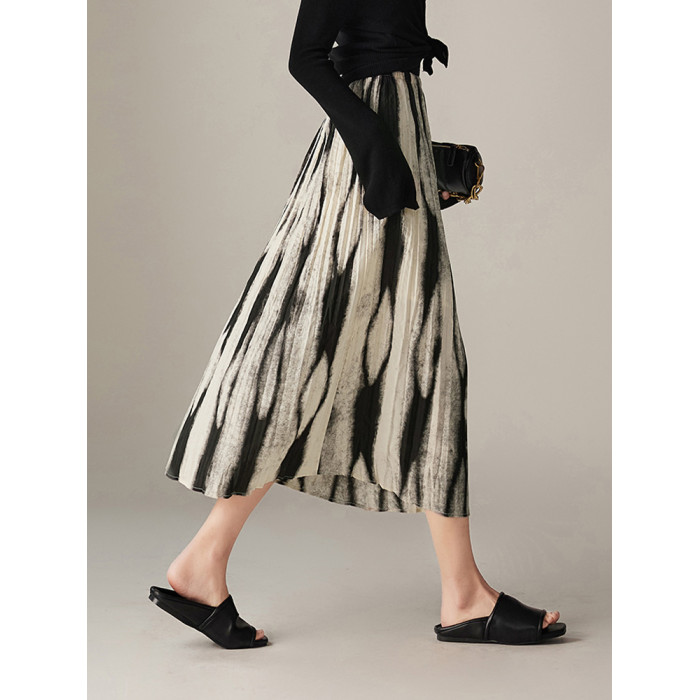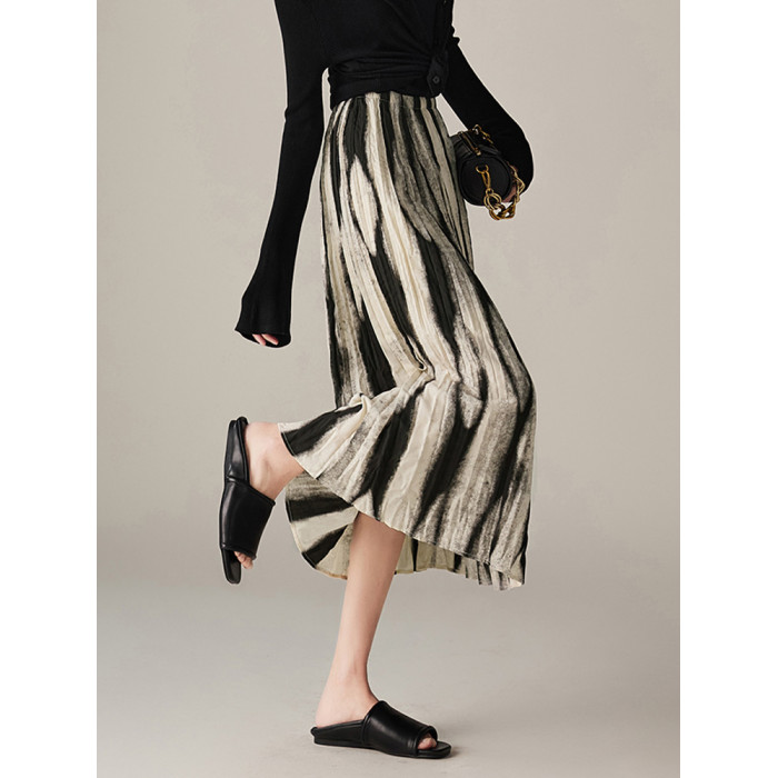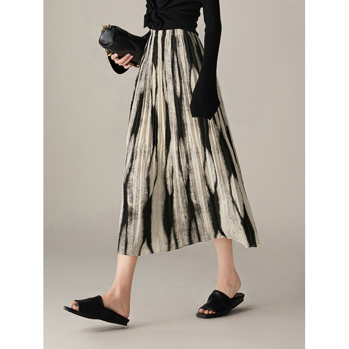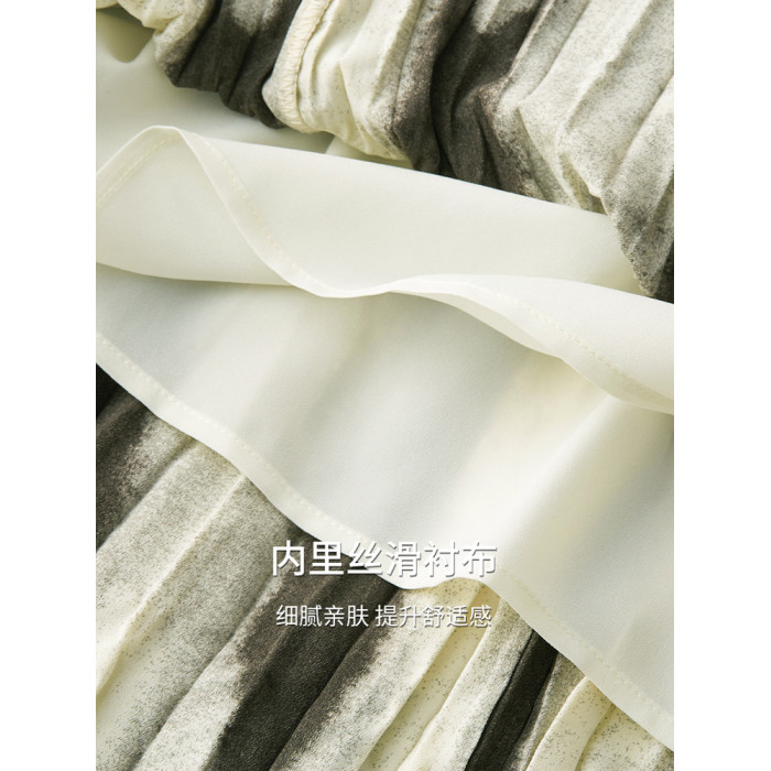 漸變印花半身裙女2025夏裝新款不規則遮胯壓褶微A字裙百褶花裙子