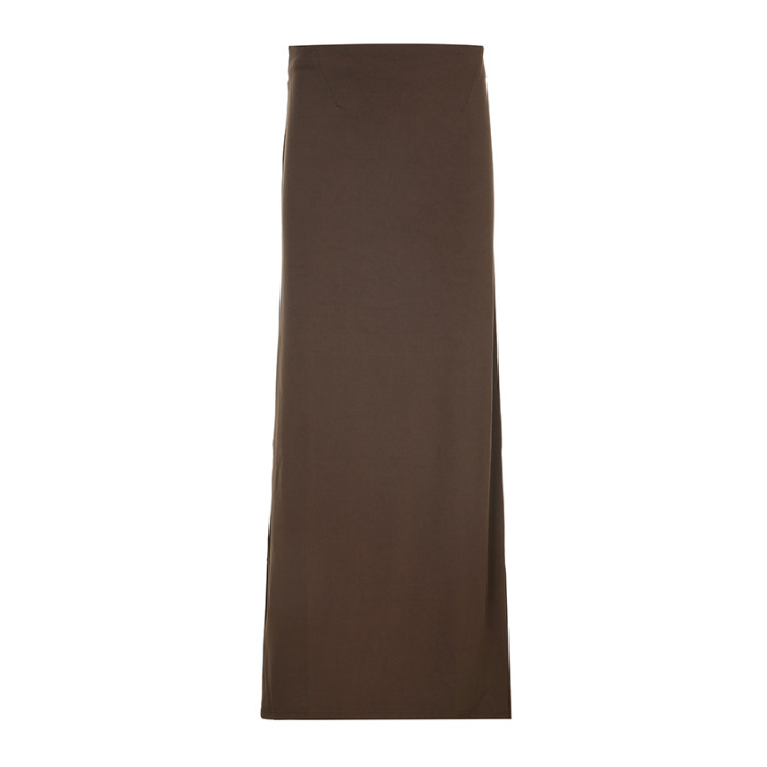 SWEETOWN復古棕色一片式開衩辣妹包臀長裙簡約百搭針織修身半身裙