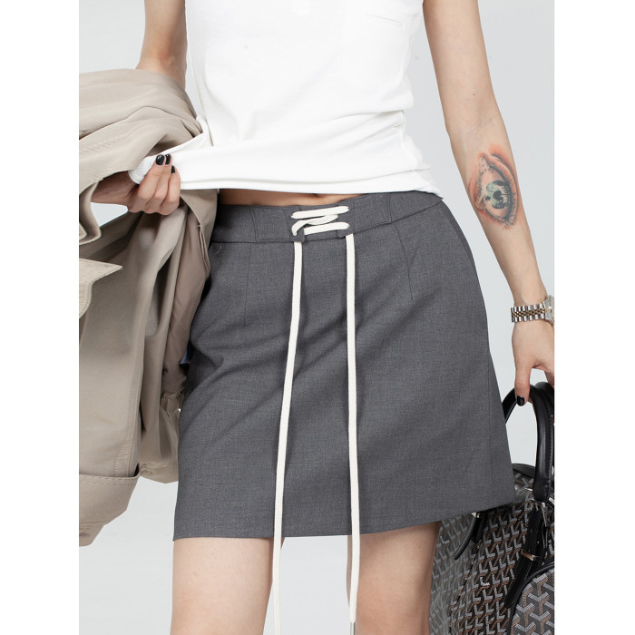 比昂三世【少女的心事你別猜】文藝少女感miu系書卷氣系帶短裙