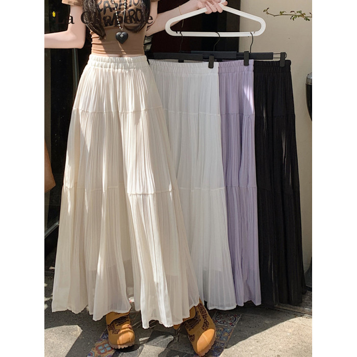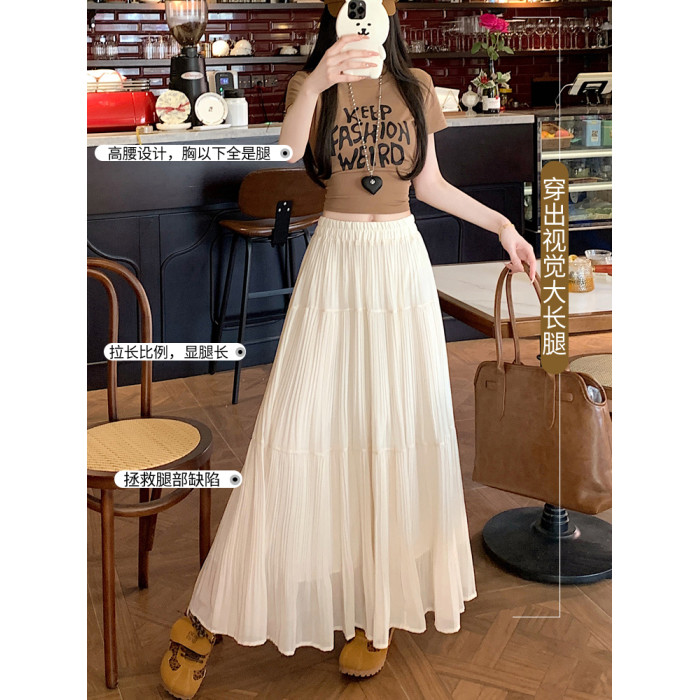 拉夏貝爾雪紡百褶半身裙女夏季薄款2025新款垂墜感a字大擺蛋糕裙