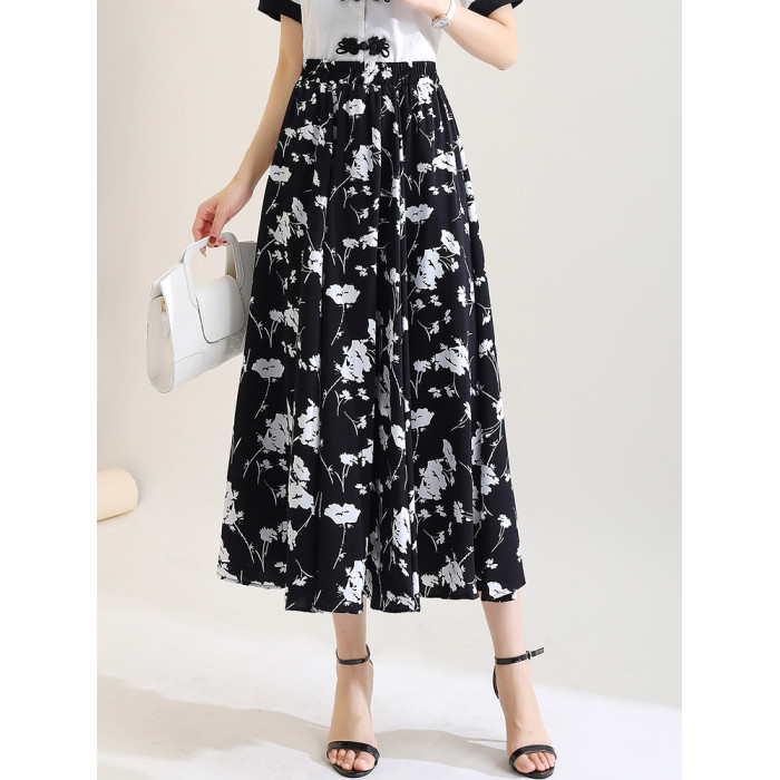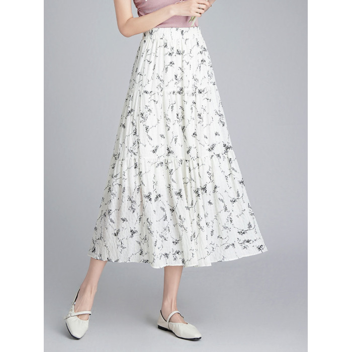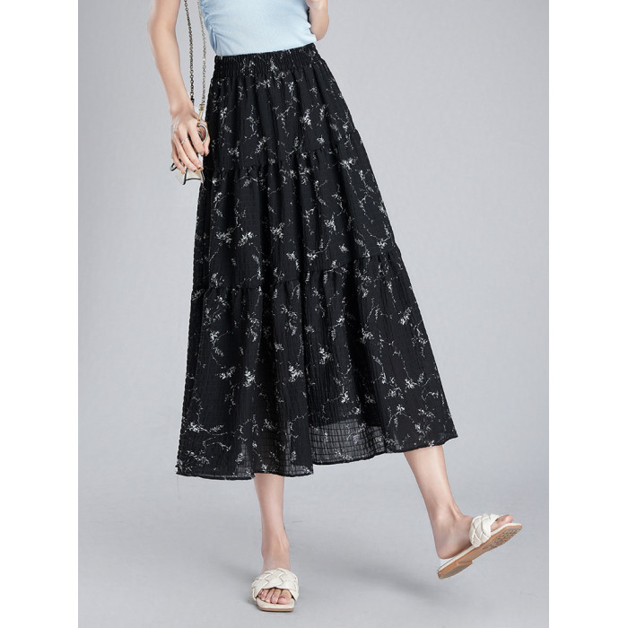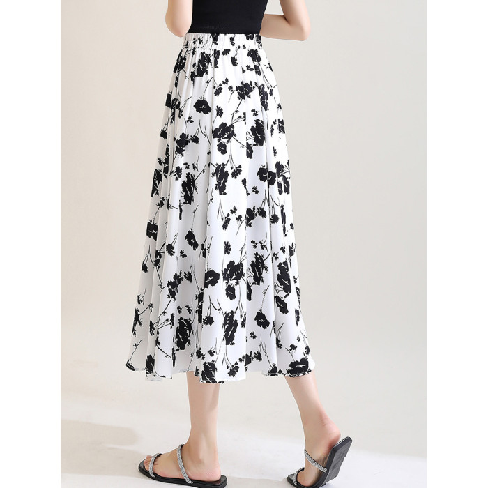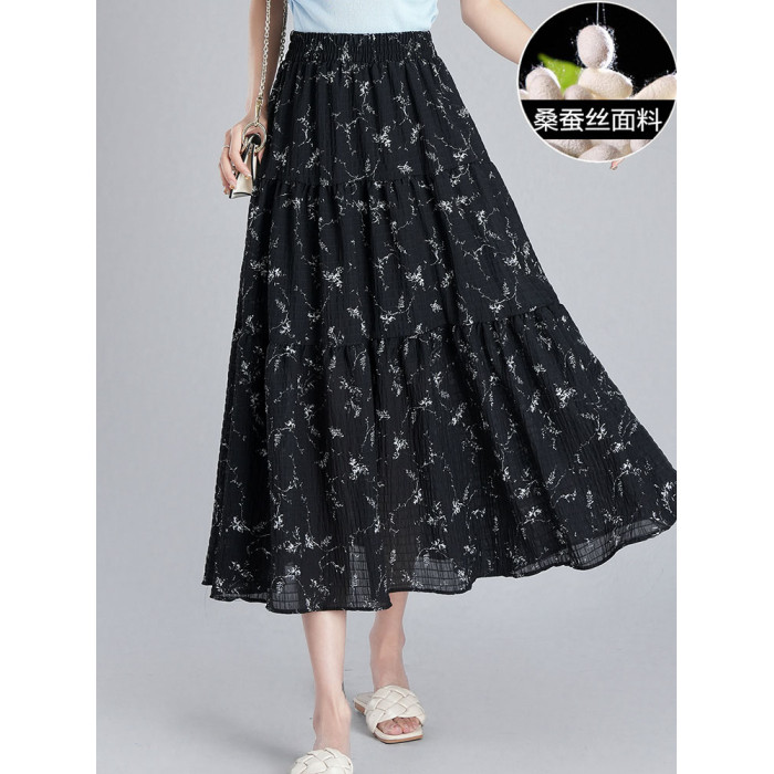 桑蠶絲印花松緊腰大擺裙女春夏2025新款時尚高腰垂感真絲半身裙子