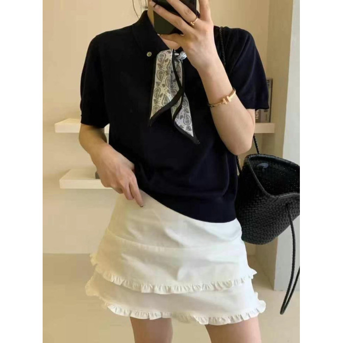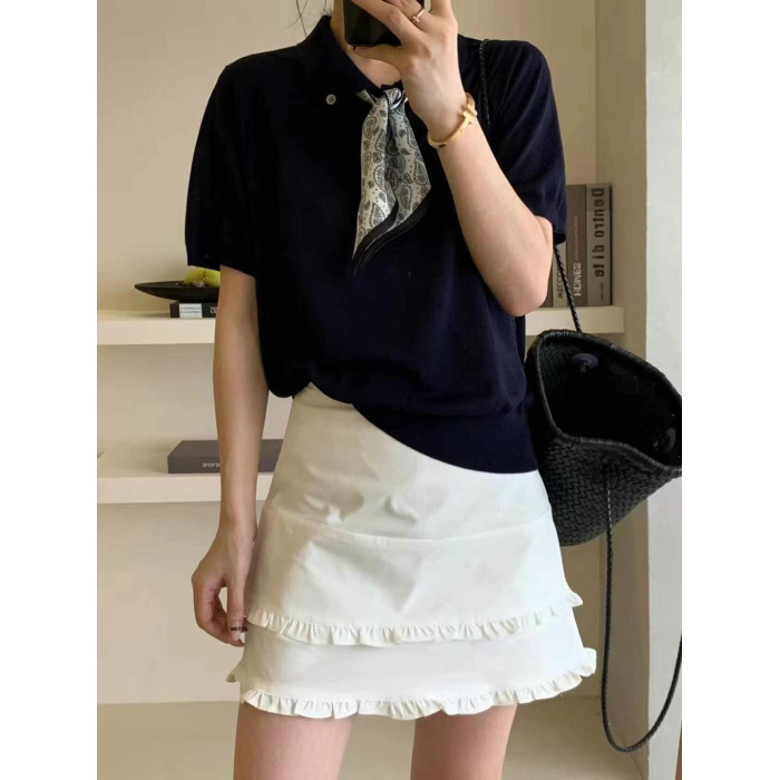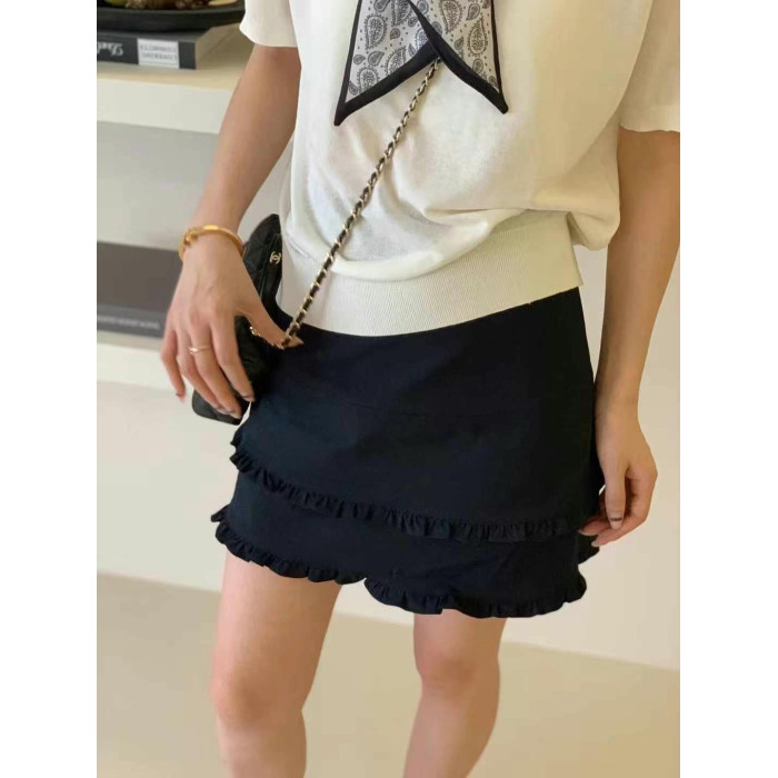 歐洲站設計感木耳邊A字短裙女2025夏季新款時尚純色通勤高級半裙