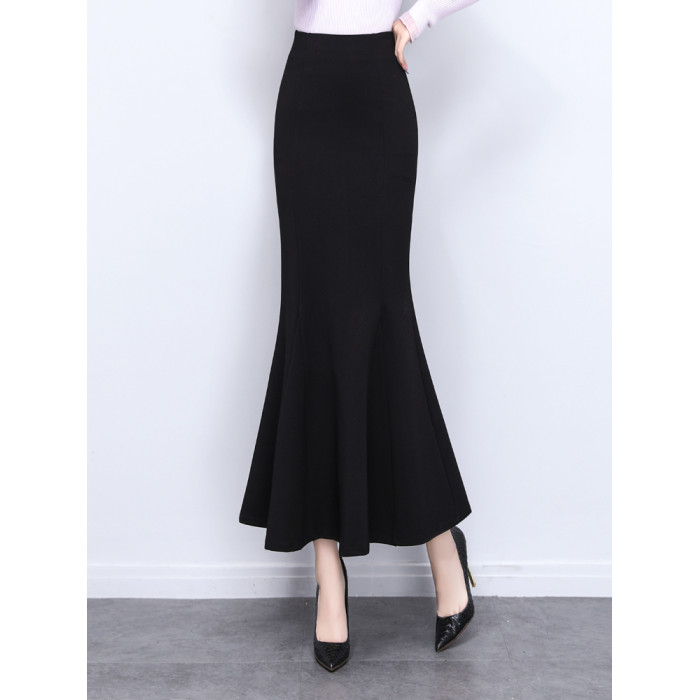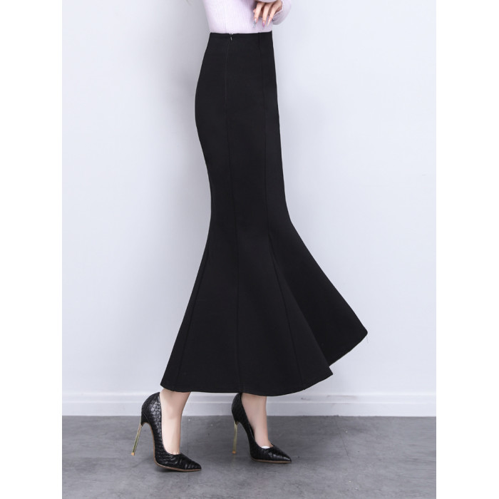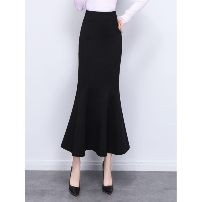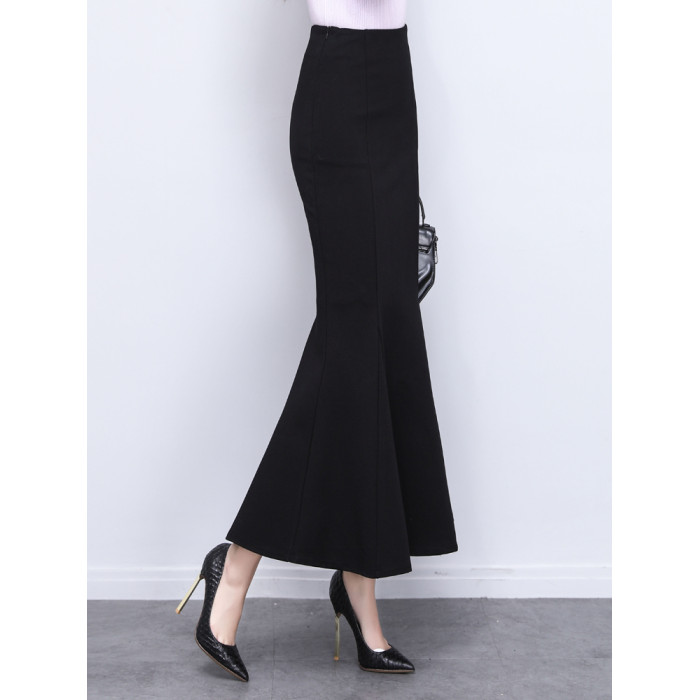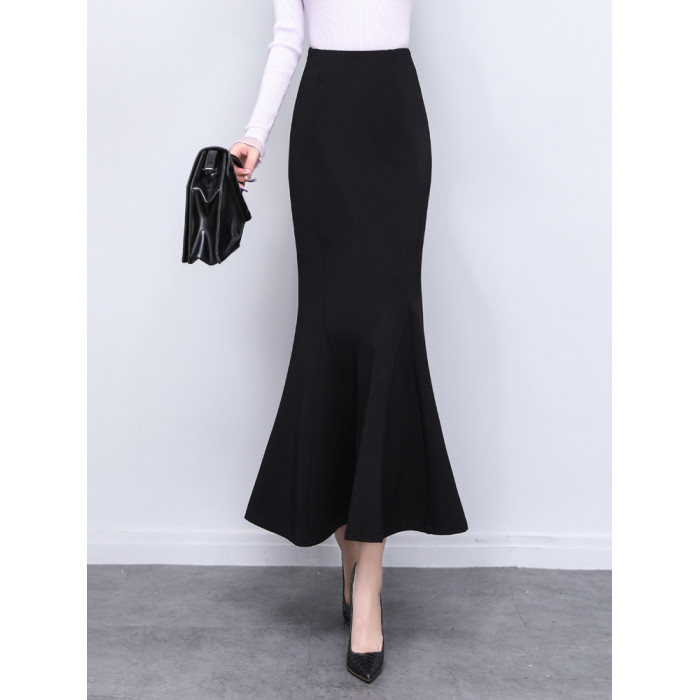 夏季2025新款長款高級精緻垂感氣質黑色包臀裙魚尾裙半身裙長裙