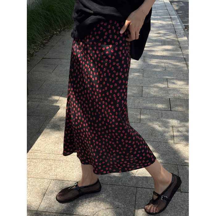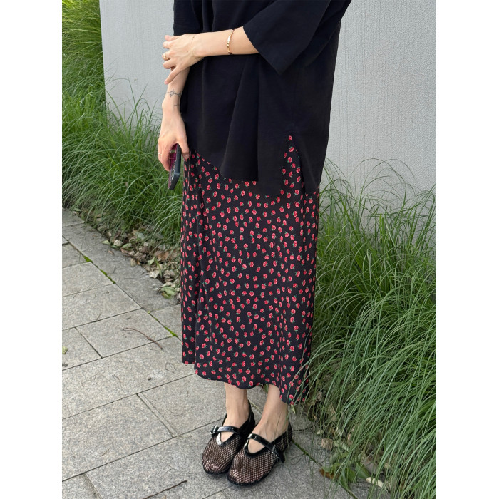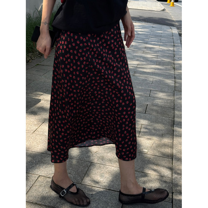 周浪清小個子氣質碎花半身裙女2025新款夏小個子松緊腰中長款裙子