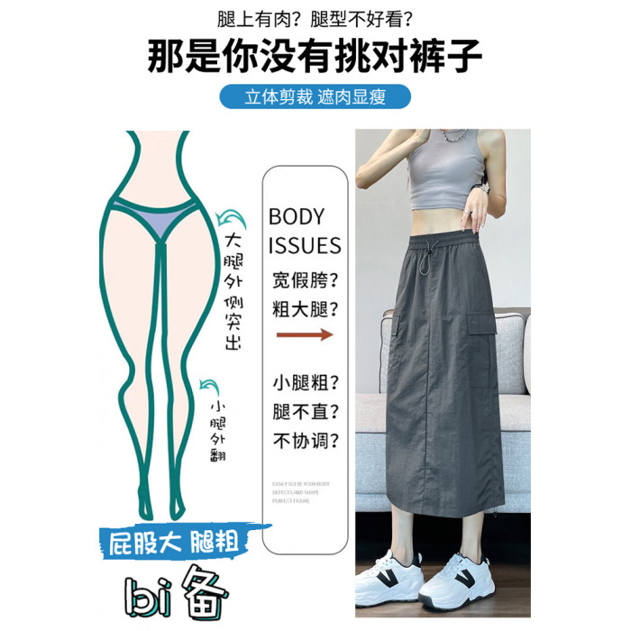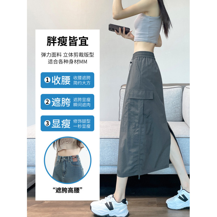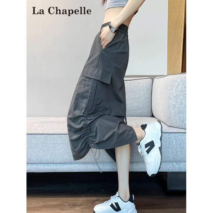 拉夏貝爾灰色工裝半身裙女夏2025新款美式酷颯風高腰抽繩a字半裙