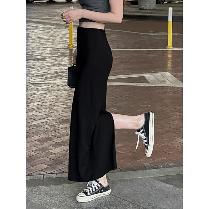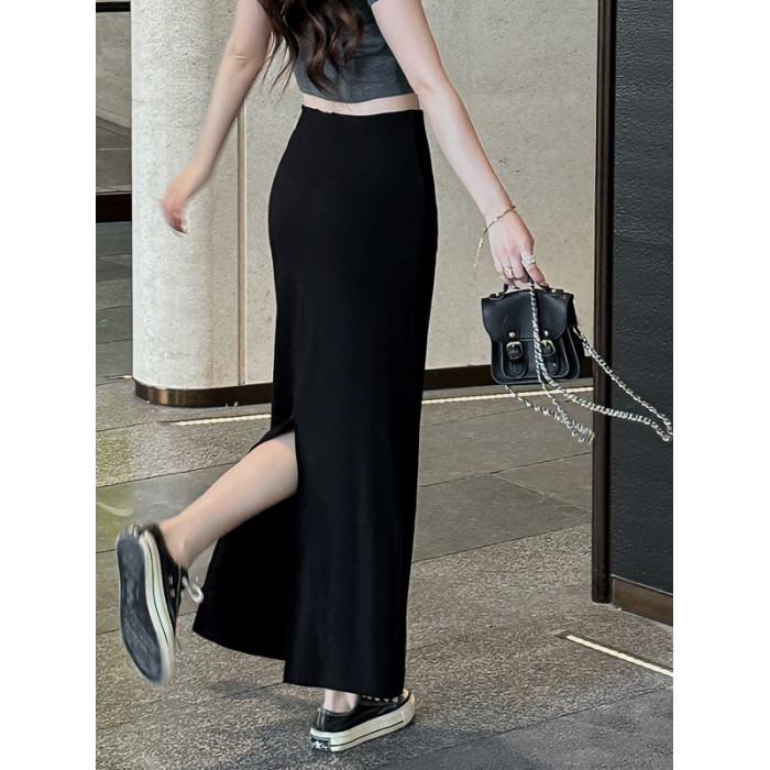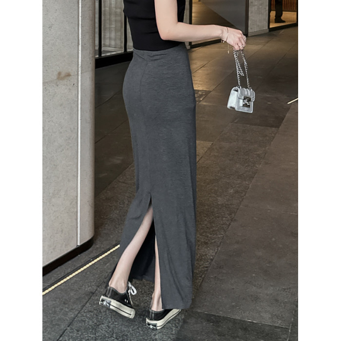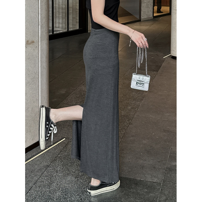 灰色莫代爾半身裙女夏季垂感薄款長裙高腰直筒裙後開叉包臀一步裙