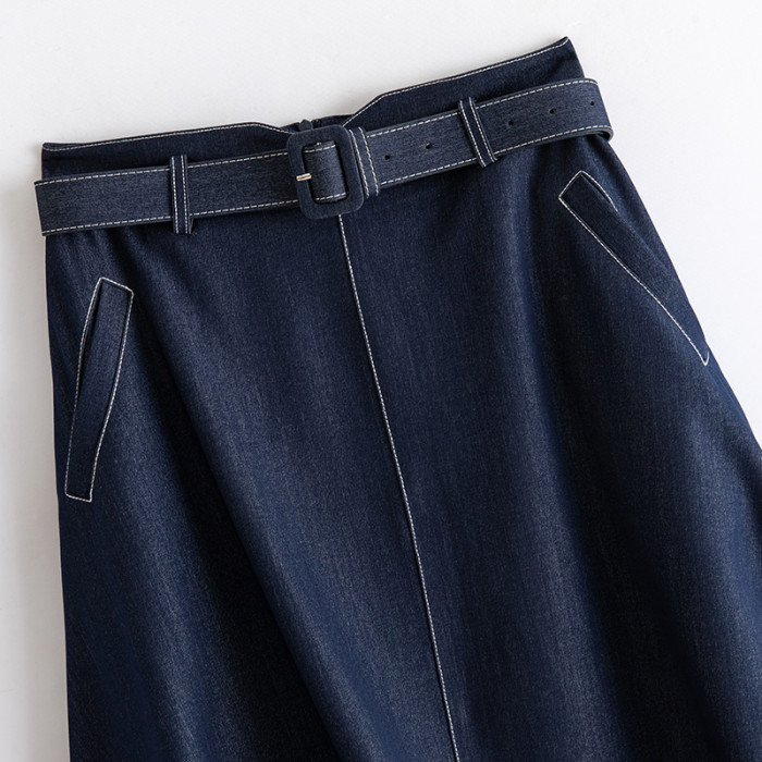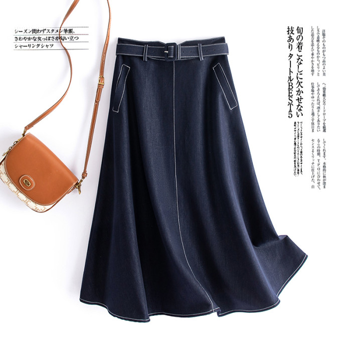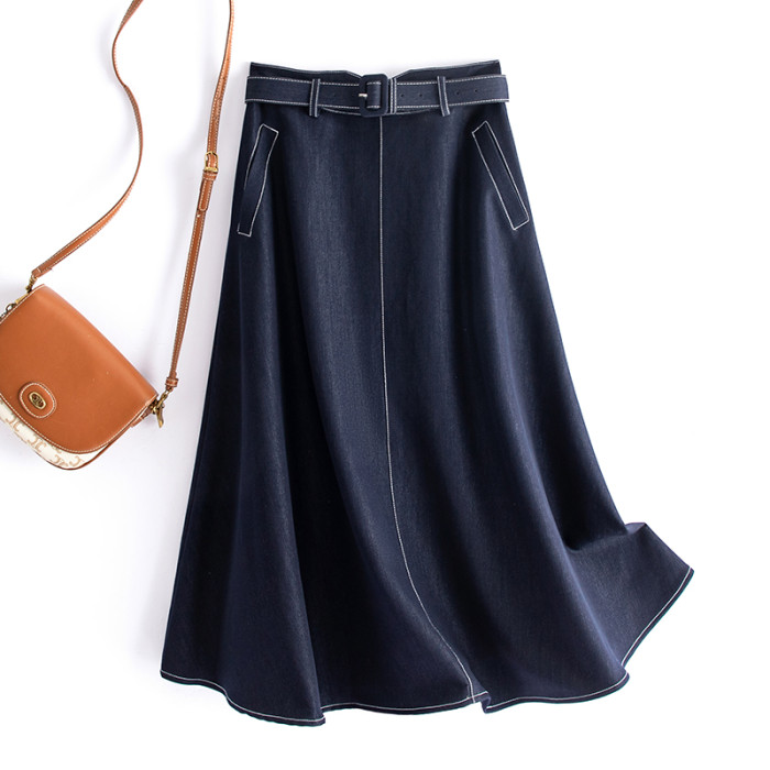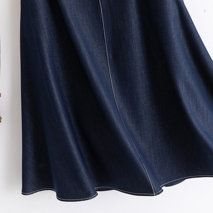 天絲牛仔半身裙女2025秋季新款高腰a字繖裙女垂墜感小個子百褶裙