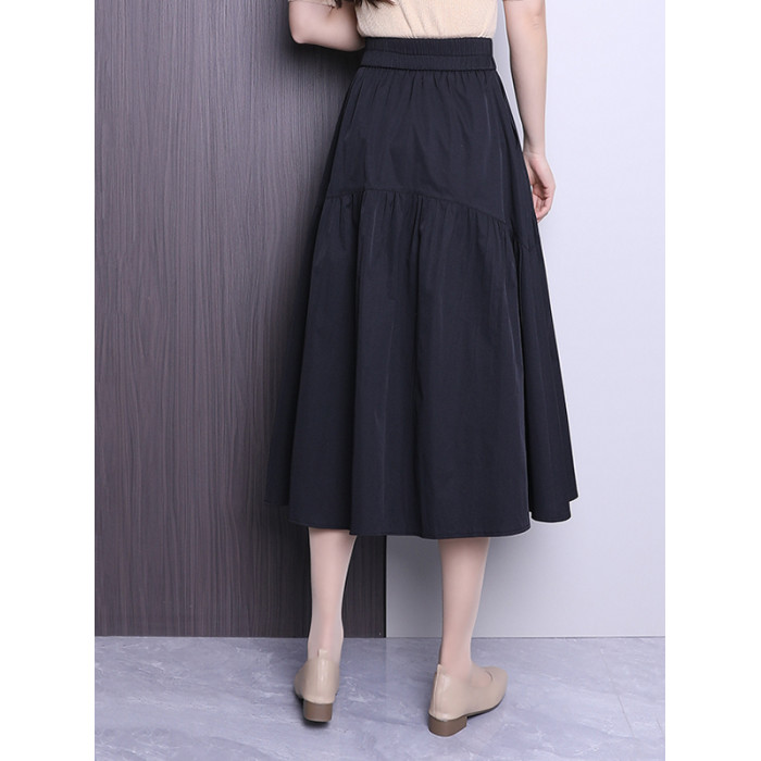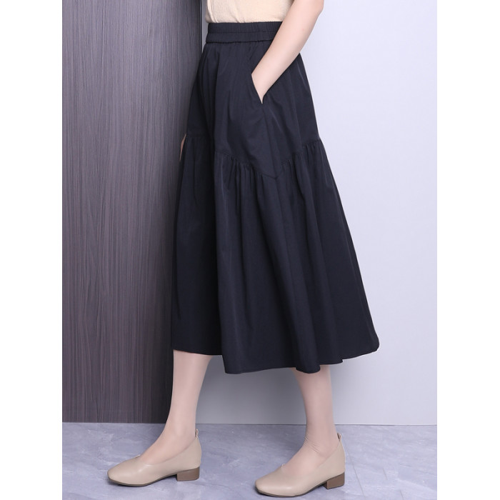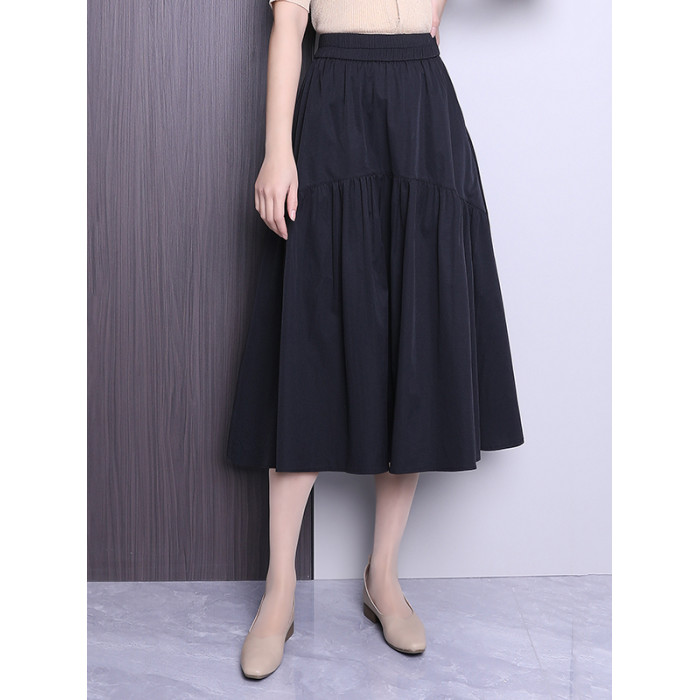 黑色休閒半身裙女春夏2025新款高腰垂感a字裙中長款顯瘦百褶繖裙