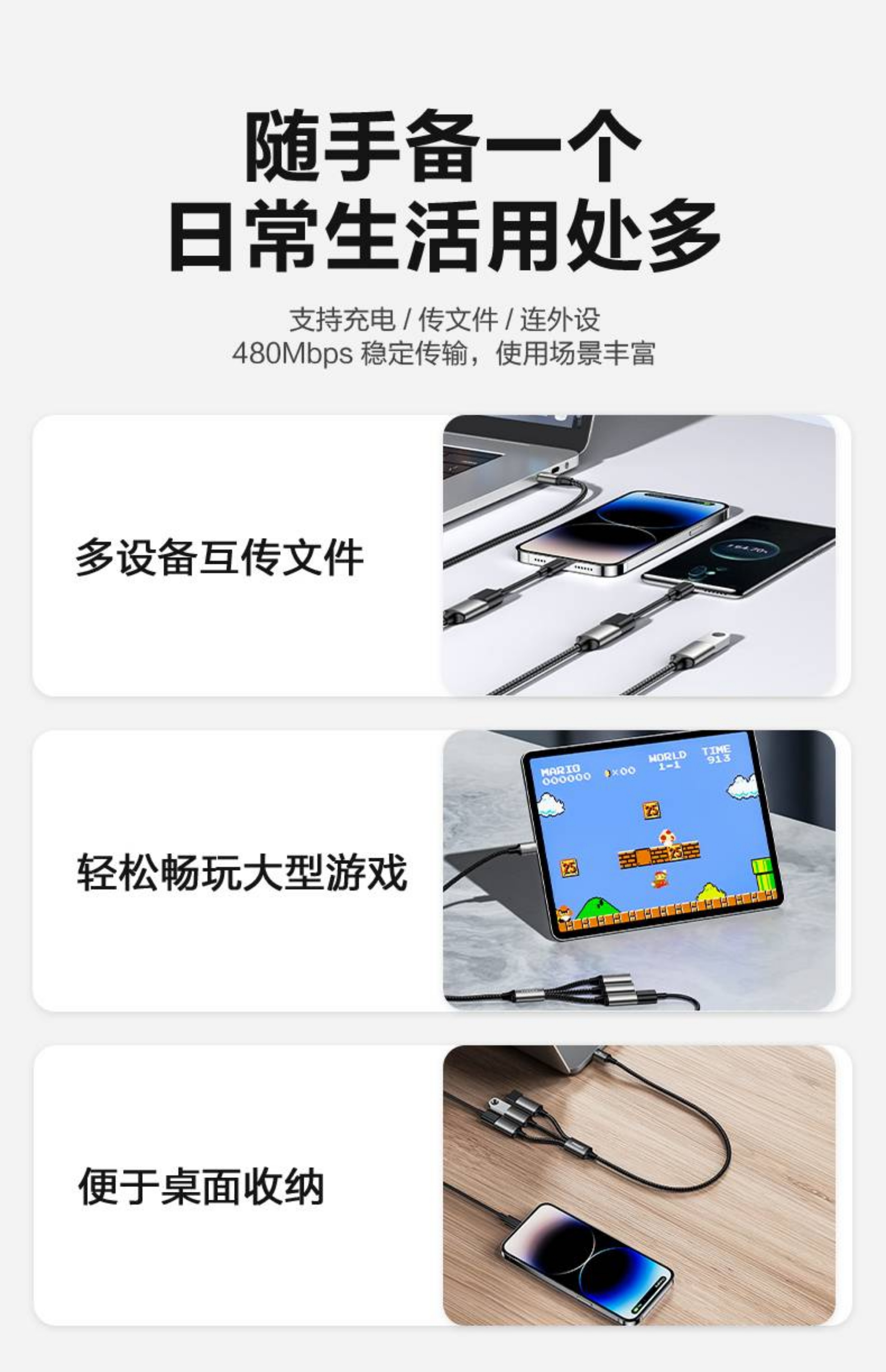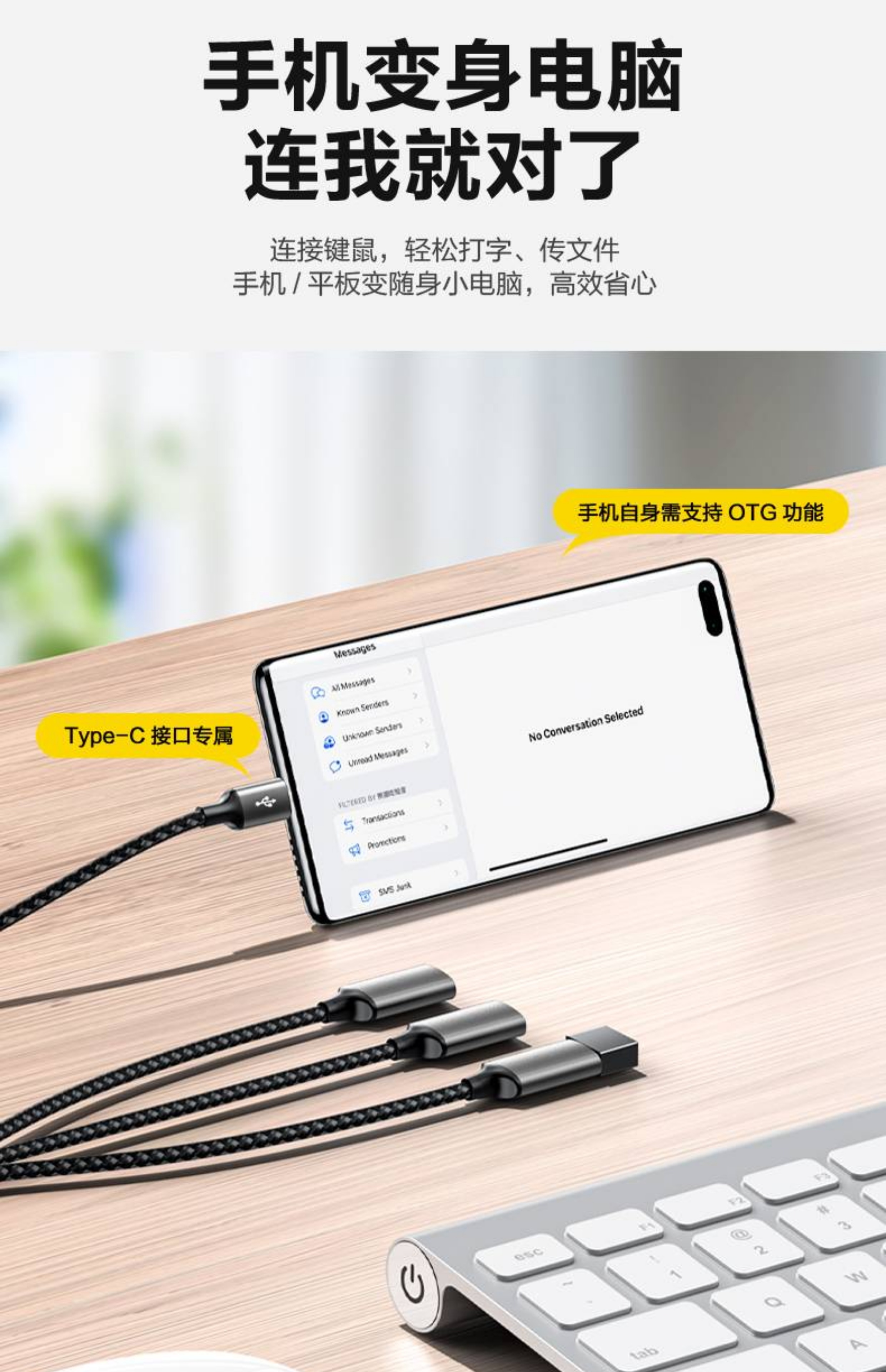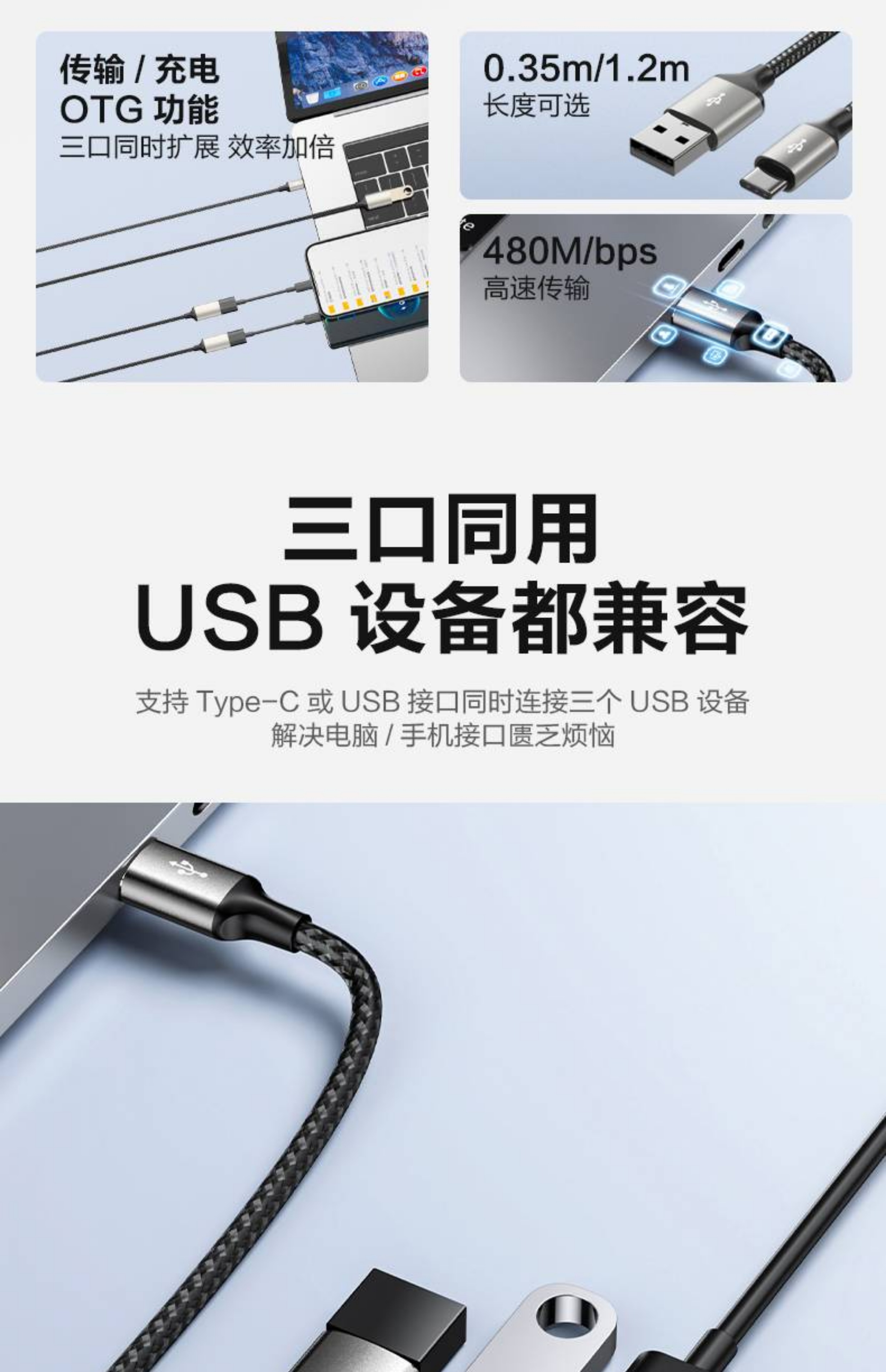 品勝一轉三拓展線typec轉換器usb分線器車用平板手機電腦數據線