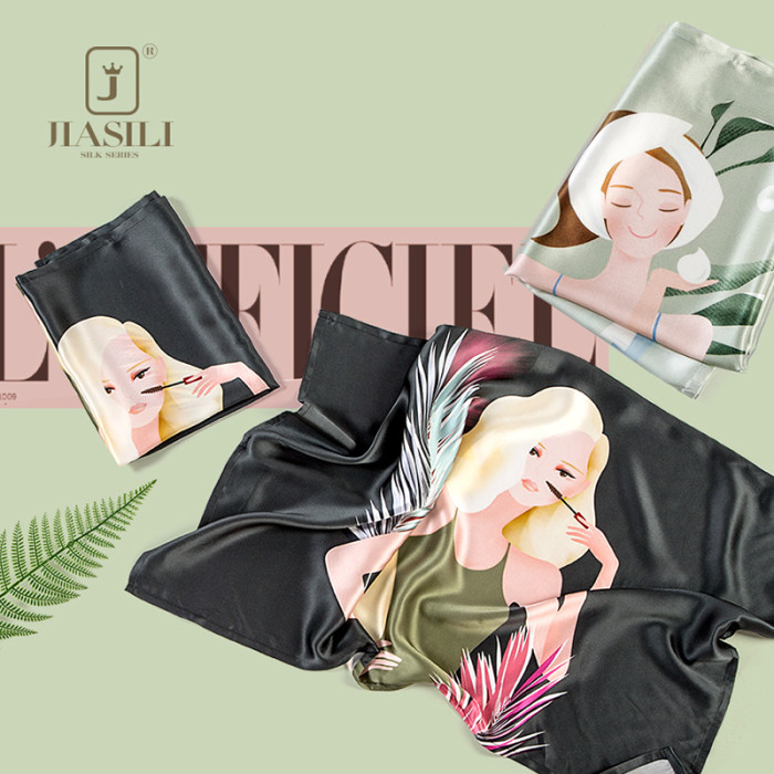 嘉絲麗真絲枕巾四季100 桑蠶絲綢枕巾枕套加厚真絲印花枕巾新
