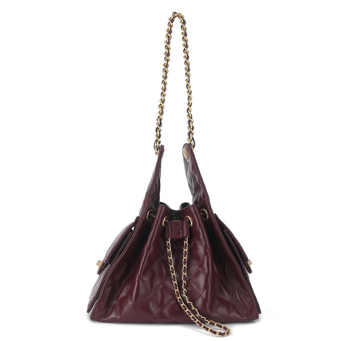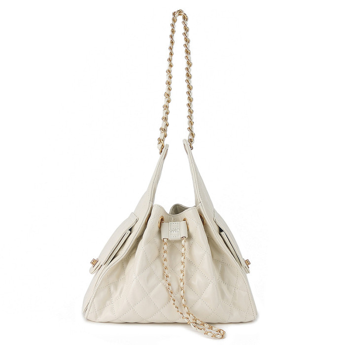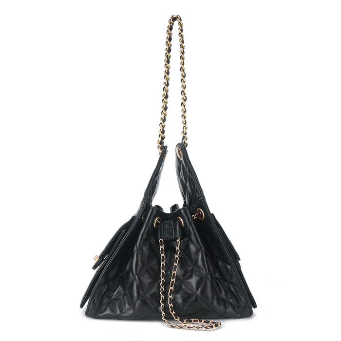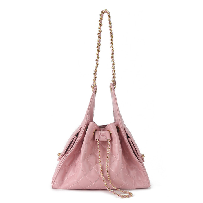 25年新款頭層皮真皮菱格鏈條單肩腋下女包休閒單肩女包