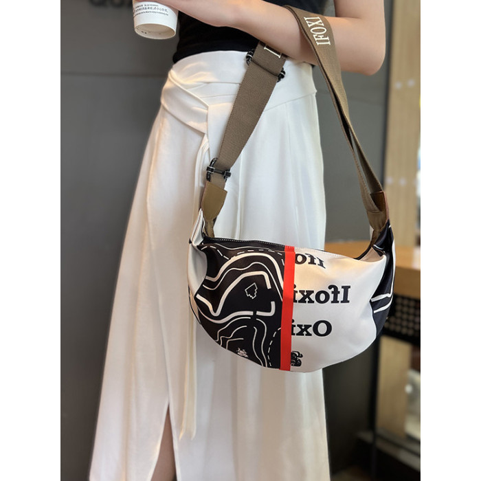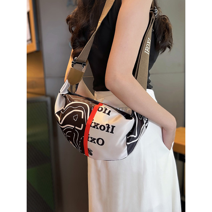 潮牌輕便斜後背包女包2025新款時尚印花牛津布單肩包休閒百搭餃子包