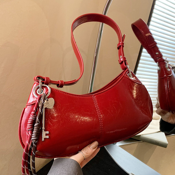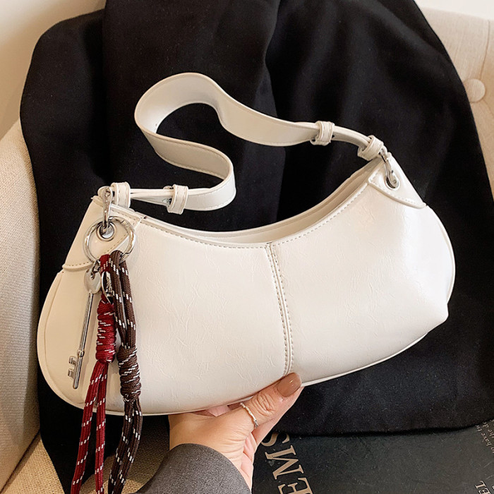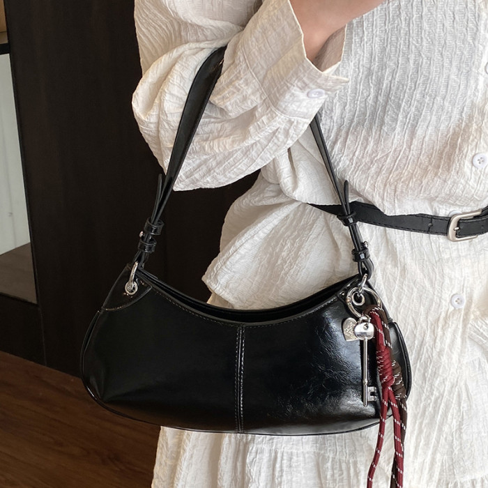 潮流新款韓國小衆高品質油蠟皮腋下包包百搭時髦個性純色單肩女包