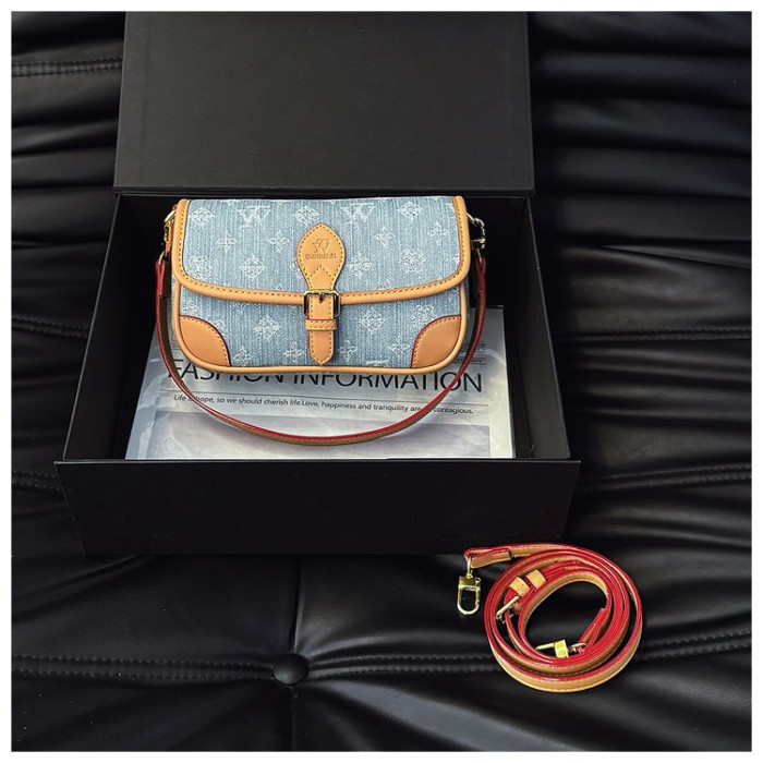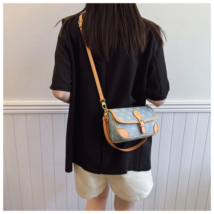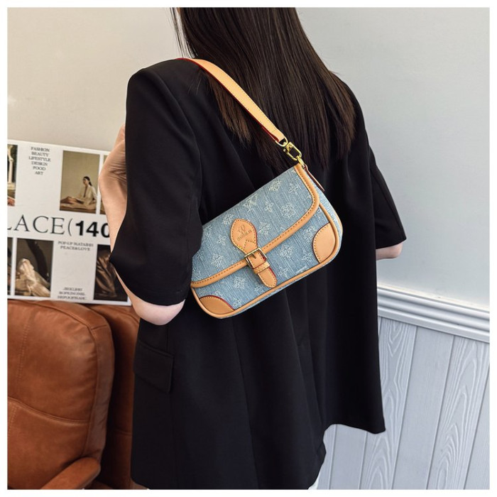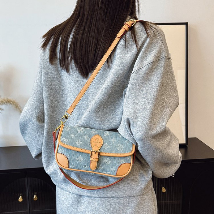 女包2025新款牛仔布集合高級感時尚復古法棍包百搭單肩斜後背包