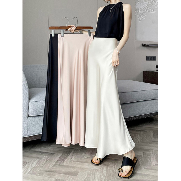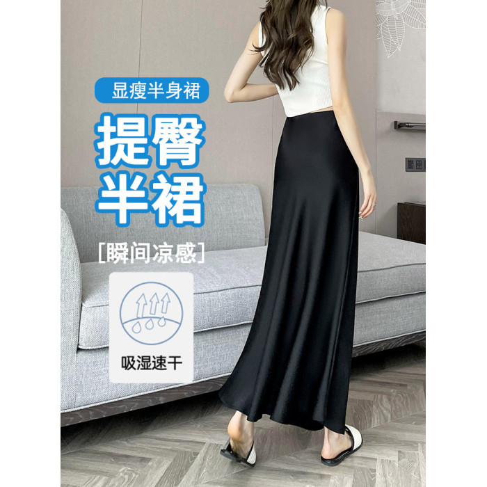 黑色魚尾裙女夏2025新款超火垂墜感絕美緞面氣質高級感長款半身裙